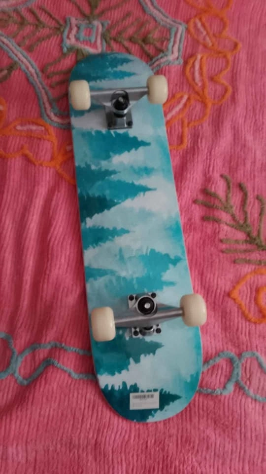 Dreambeauty 31x8 inch pro skateboard with a cool forest design in blue and white. Great for kids or adults. Used only once, plastic cover still on. Made in China. Pickup only.
