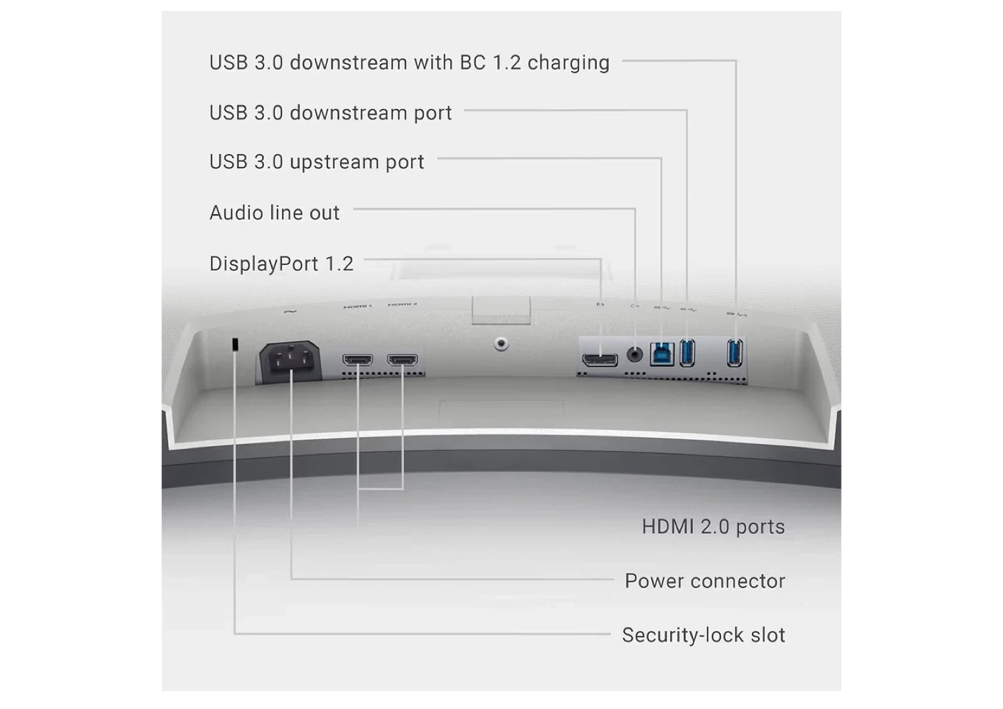Selling a Dell S3221QS 31.5" 4K UHD curved monitor. It features a VA panel with an 1800R curvature and a 60Hz refresh rate. The monitor also has USB 3.0 downstream ports with BC 1.2 charging, USB 3.0 downstream and upstream ports, audio line out, and DisplayPort 1.2. It also has HDMI 2.0 ports and a security-lock slot. Its dimensions are 20.4" x 27.92" x 8.15".
