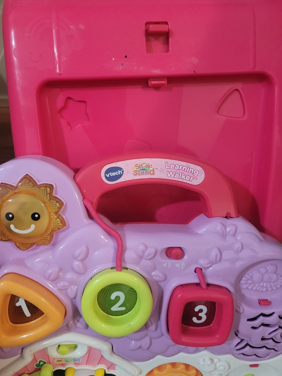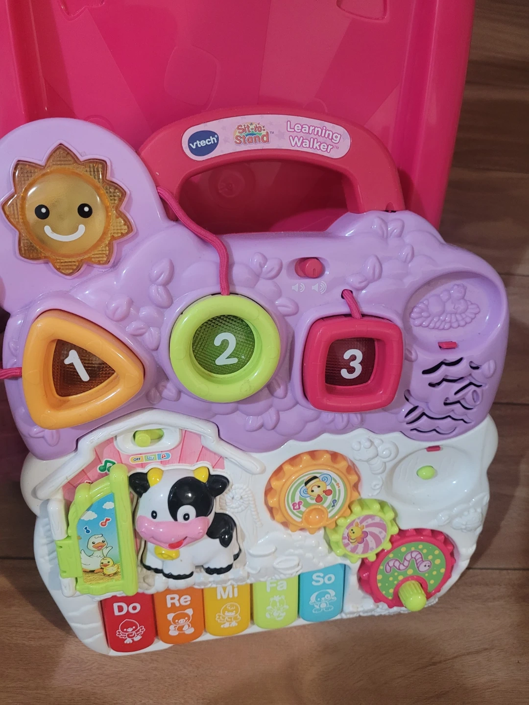 This VTech Sit-to-Stand Learning Walker helps babies develop motor skills and cognitive abilities. It features a detachable activity panel with colourful shapes, numbers, and a piano keyboard. It also has a variety of interactive buttons and sounds to keep little ones engaged.