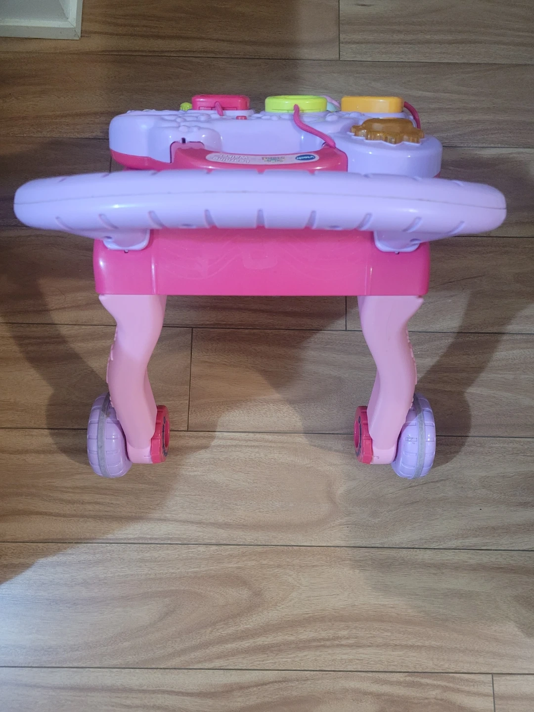 This VTech Sit-to-Stand Learning Walker helps babies develop motor skills and cognitive abilities. It features a detachable activity panel with colourful shapes, numbers, and a piano keyboard. It also has a variety of interactive buttons and sounds to keep little ones engaged.