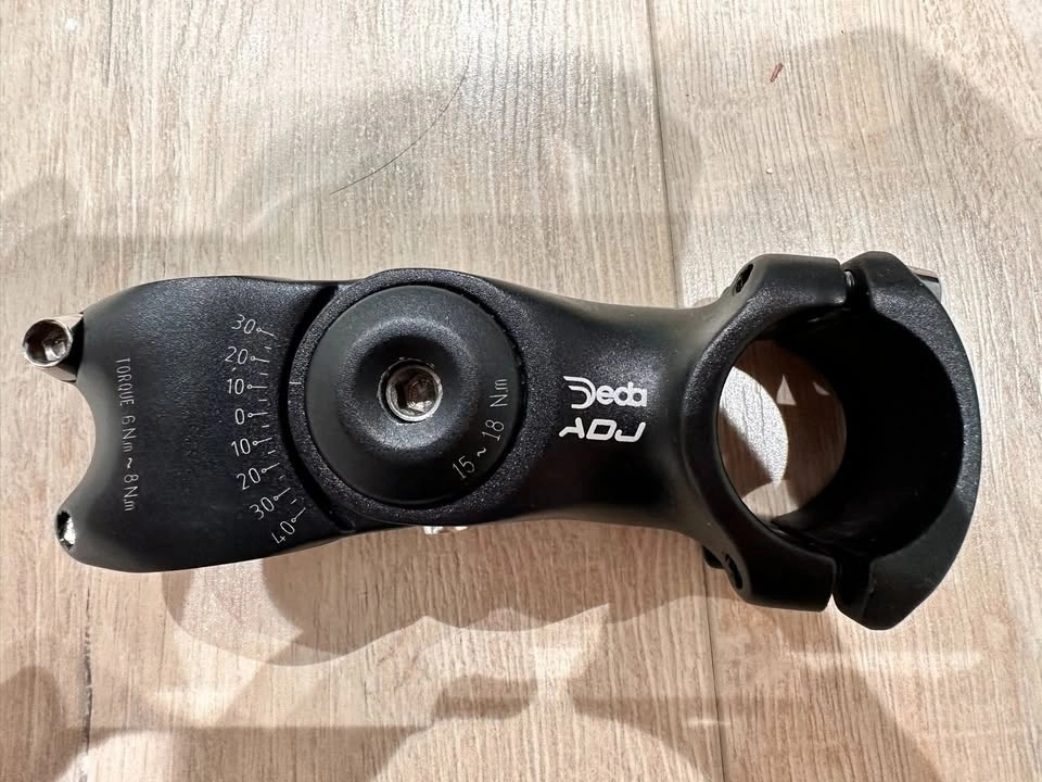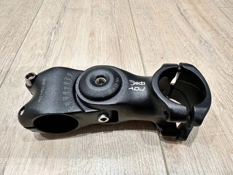 Purchased for $100+tax. Perfect condition. Price firm. Pick-up near Cambie & King Edward. The Deda ADJ Adjustable Stem is the true tool to find your perfect riding position. Forged 6061 T6 parts, double splined main axle. Micro adjustment, one hand operation. It is the stem used by professional team mechanics to help riders in testing and valuing riding position on time trial bikes. Material: Alloy 6061 forged, Screws: CrMo, Extension angle: adjustable between +30° and -40°, Fork Steerer: 1-1/8" (28.6mm), Clamp height: 40 mm, Weight: 260 g.
