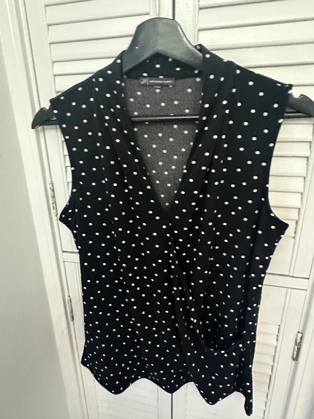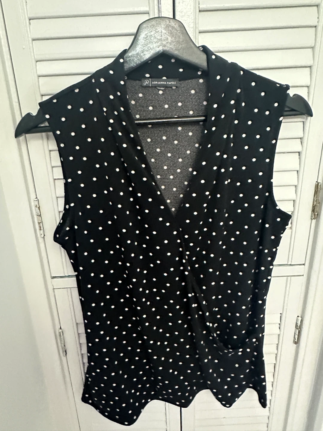 Adrianna Papell Black Polka Dot Sleeveless Wrap Top