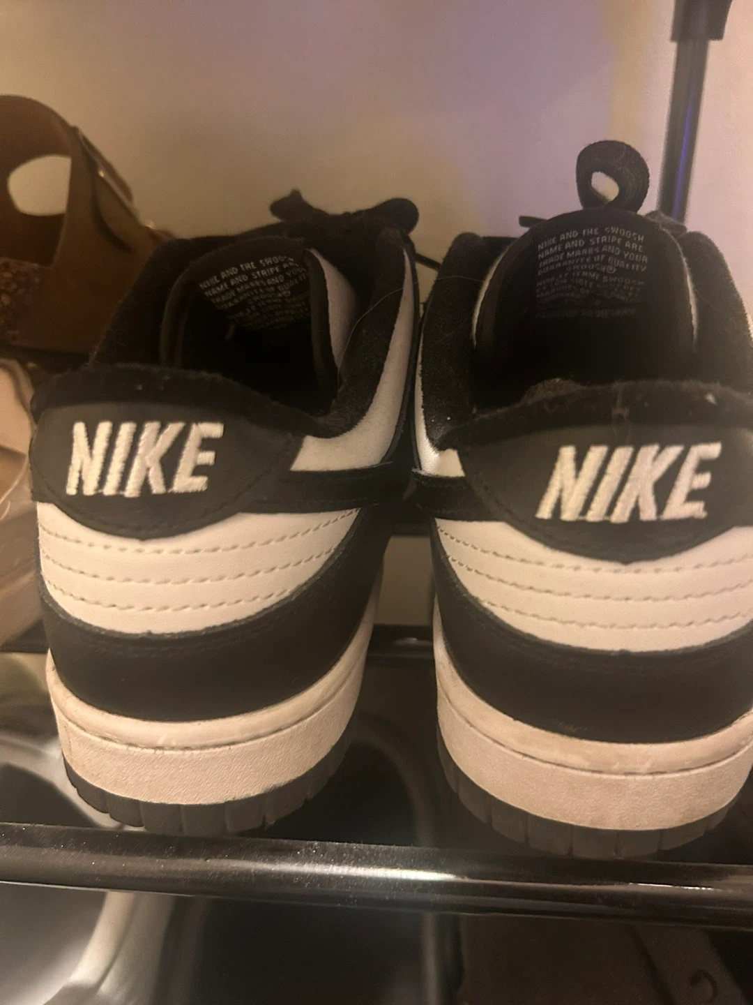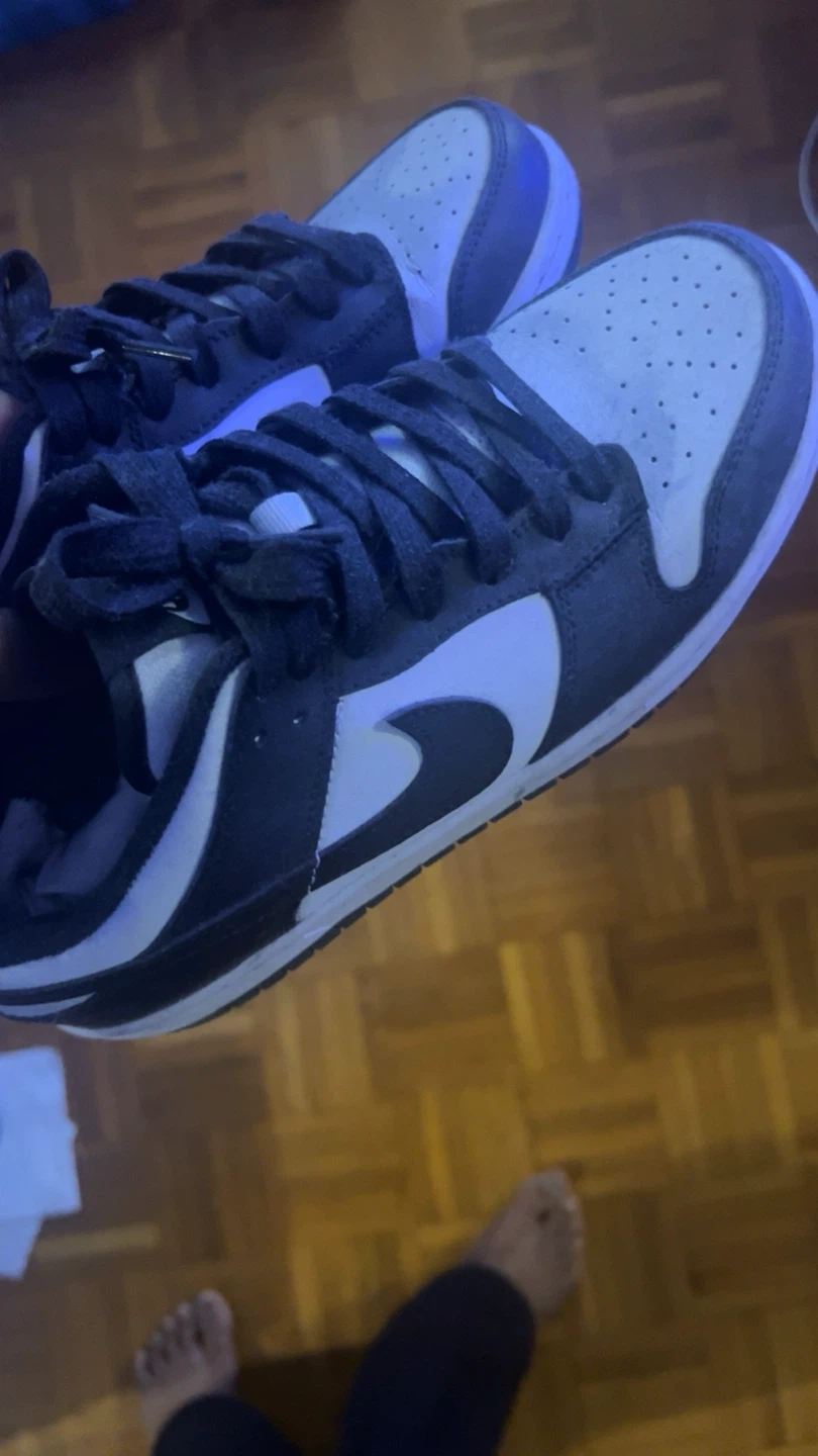 These are a pair of Nike Dunk Low sneakers in black and white. They're a classic low-top silhouette. This style is popular for everyday wear. Only worn twice so basically new