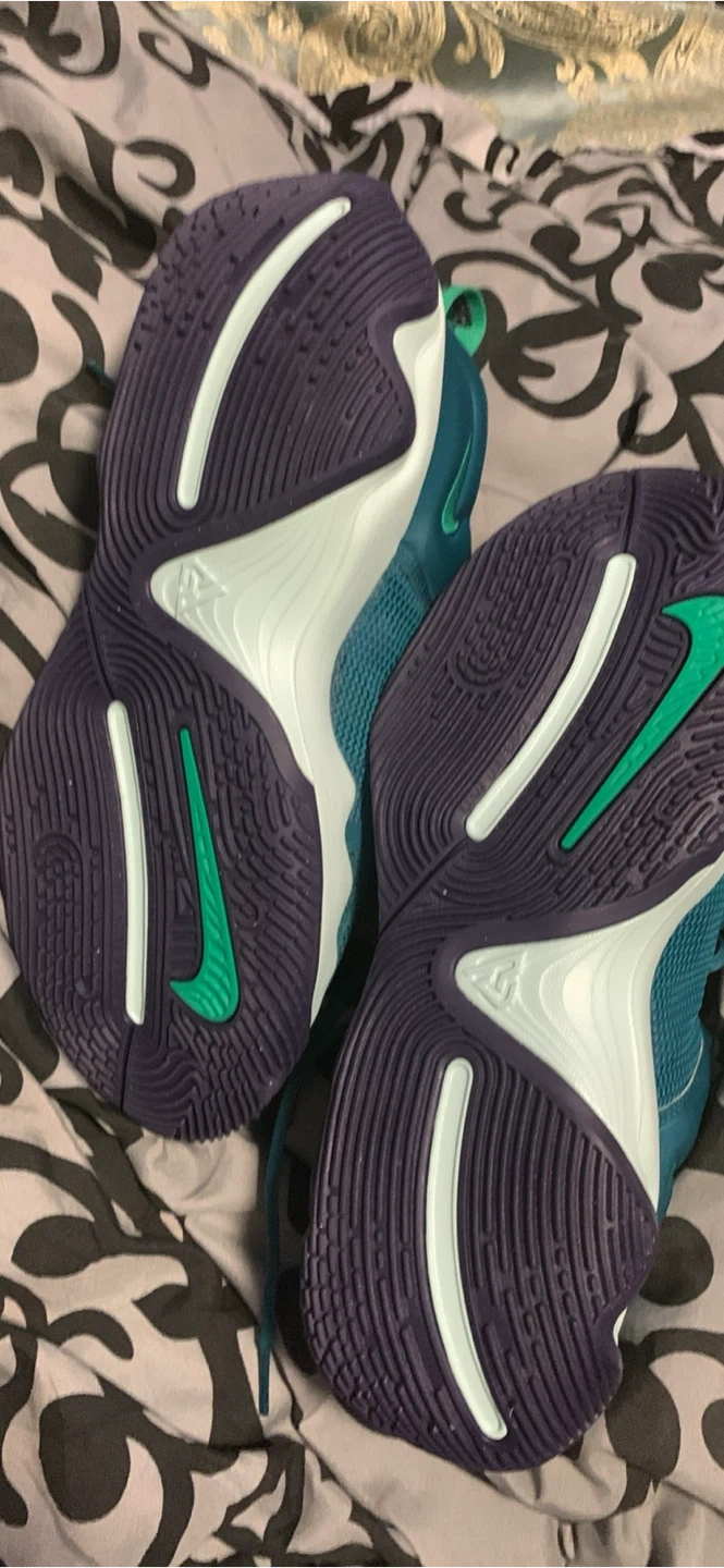 Selling a pair of Nike Freak 5 basketball shoes in size 10.5. The shoes feature a teal and purple colour scheme. Great for on the court or casual wear!