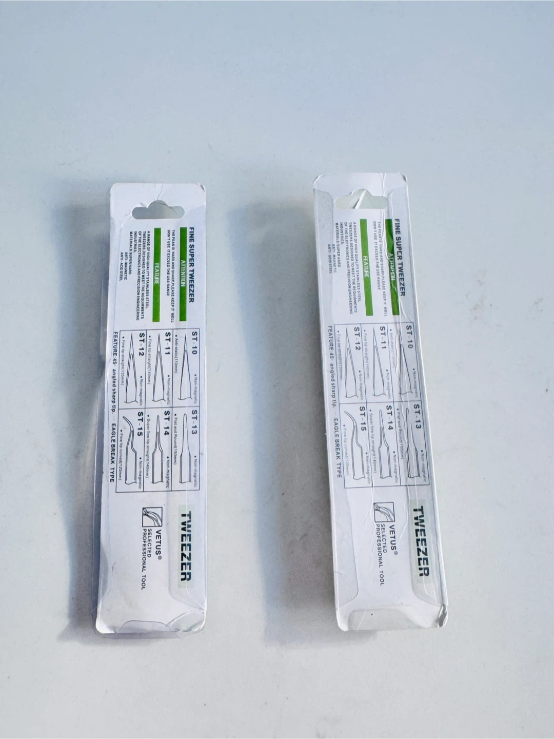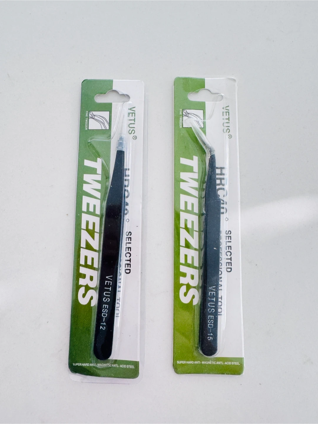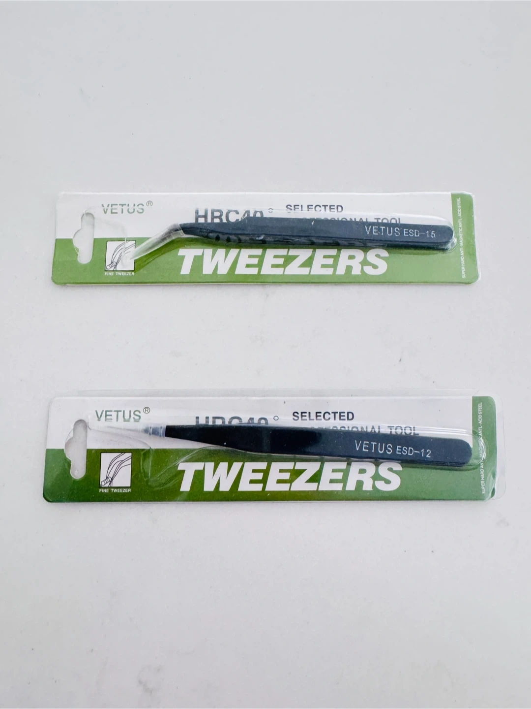 Selling two Vetus fine super tweezers! One is model ST-12 and the other is ESD-15. These are anti-magnetic and anti-acid steel, perfect for electronics and precision work.