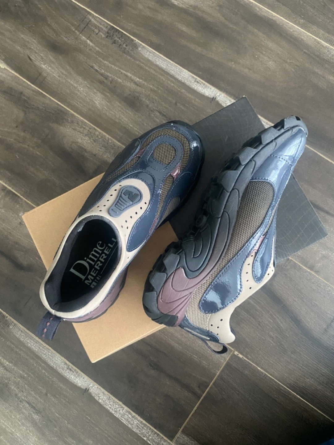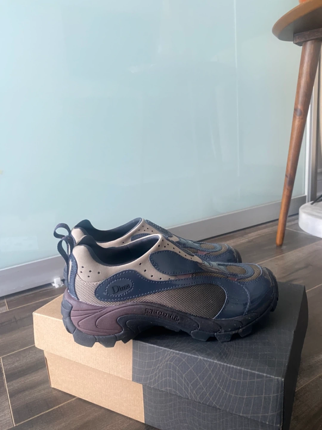 Dime x Merrell 1trl speed mocs in a tan and navy colourway. Includes original box. Only wore them once 🥲
