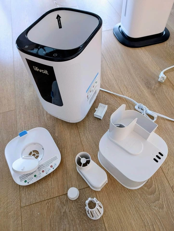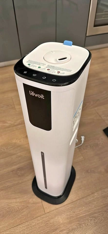 Levoit tower humidifier with easy control buttons on top. Can be controlled remotely by app or smart home devices like Google Home. Features a water level indicator on the front. Great for making your space more comfortable. Easy to disassemble and reassemble for deep cleaning. Comes with a small cleaning brush. Pick up from North York only.