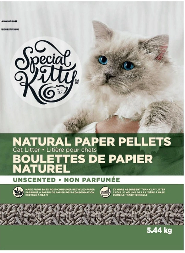 3 bags of Special Kitty Natural Paper Pellet Cat Litter, each containing 5.44 kg of unscented litter. These bags are sealed and have not been opened. Pick up is available at Hurontario and Burnhamthorpe. If this ad is still visible, the item is still available.