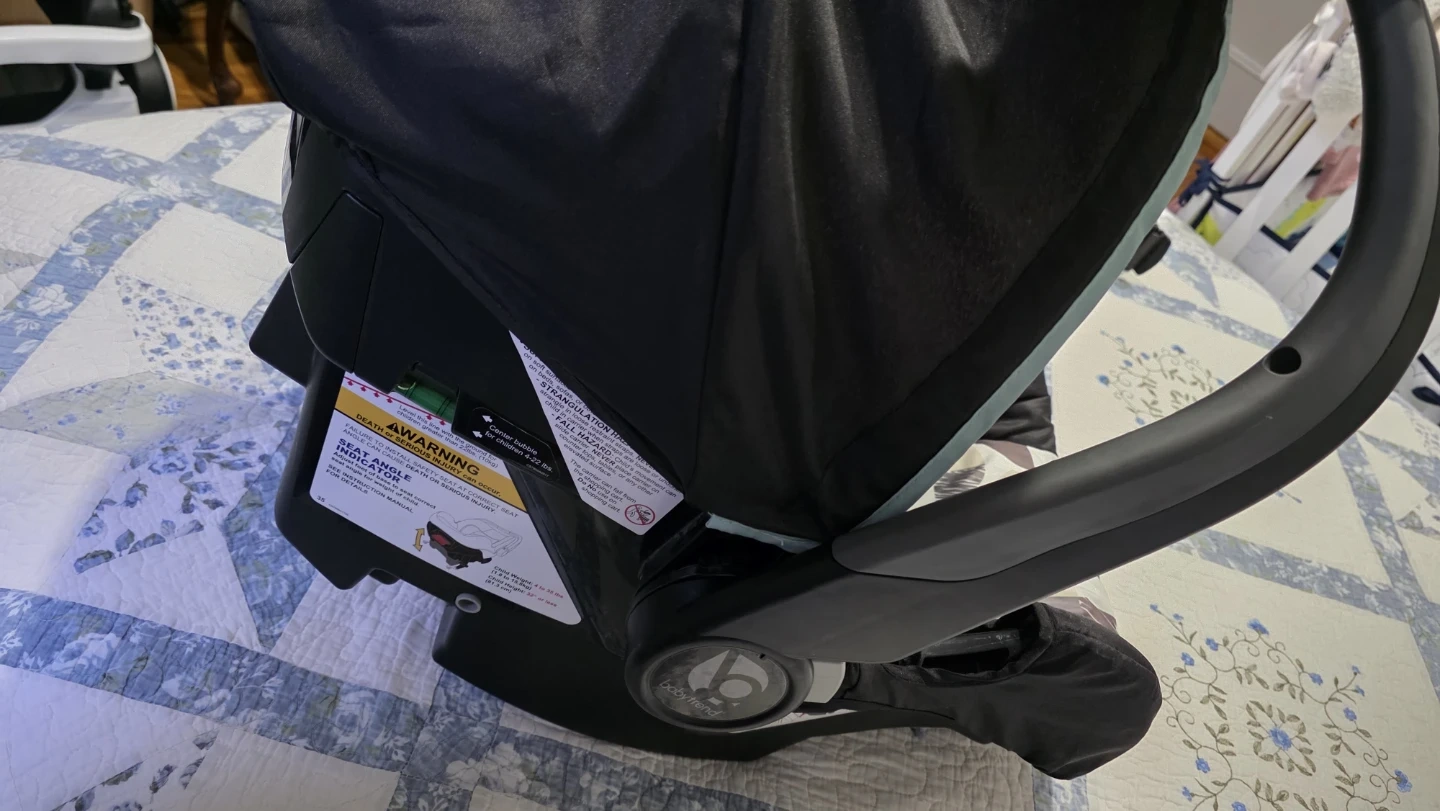 This is a Baby Trend infant car seat. It features a comfortable patterned insert and a black exterior. It includes a 5-point harness system for safety. Suitable for infants.