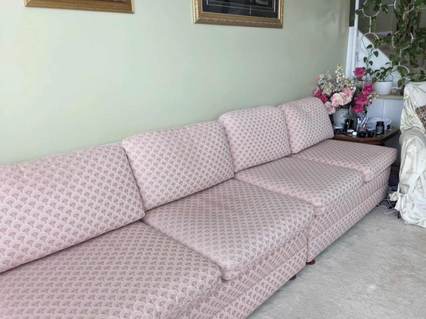 Selling a comfortable and stylish 3-piece pink sectional sofa.