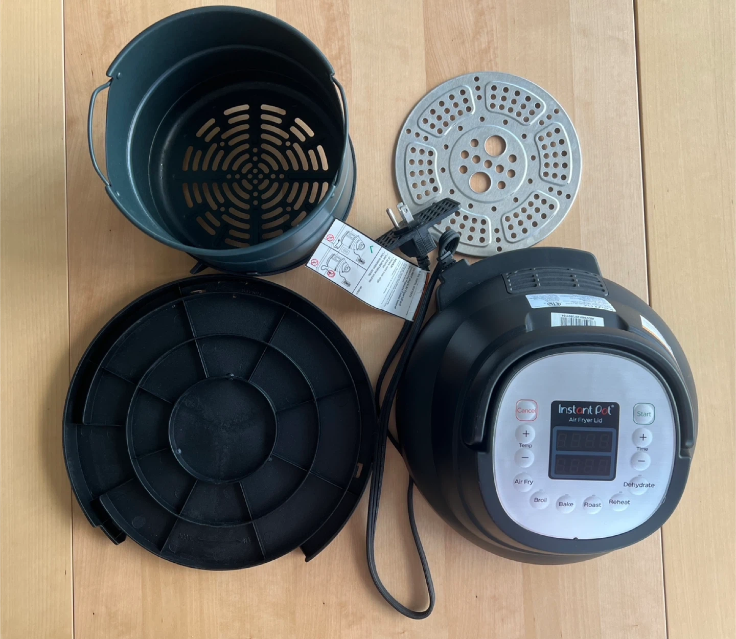 It's in great condition and ready to use! Comes with all accessories - air fryer basket, stainless steel shelf and air fryer lid pad. Compatible with 6 quart instant pot.