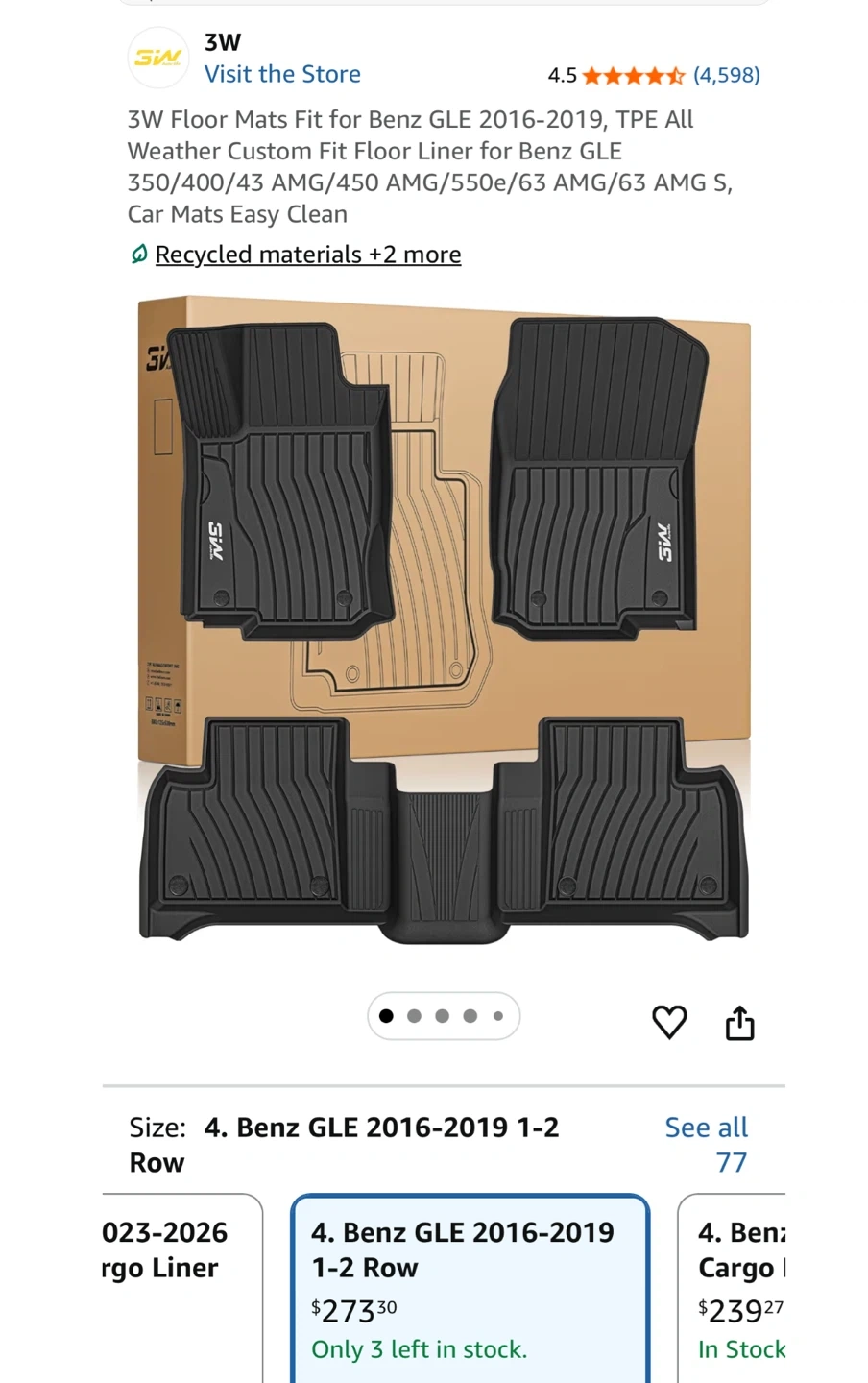 3W All-Weather Mats - Mercedes GLE 2016-2019 (Full Set)