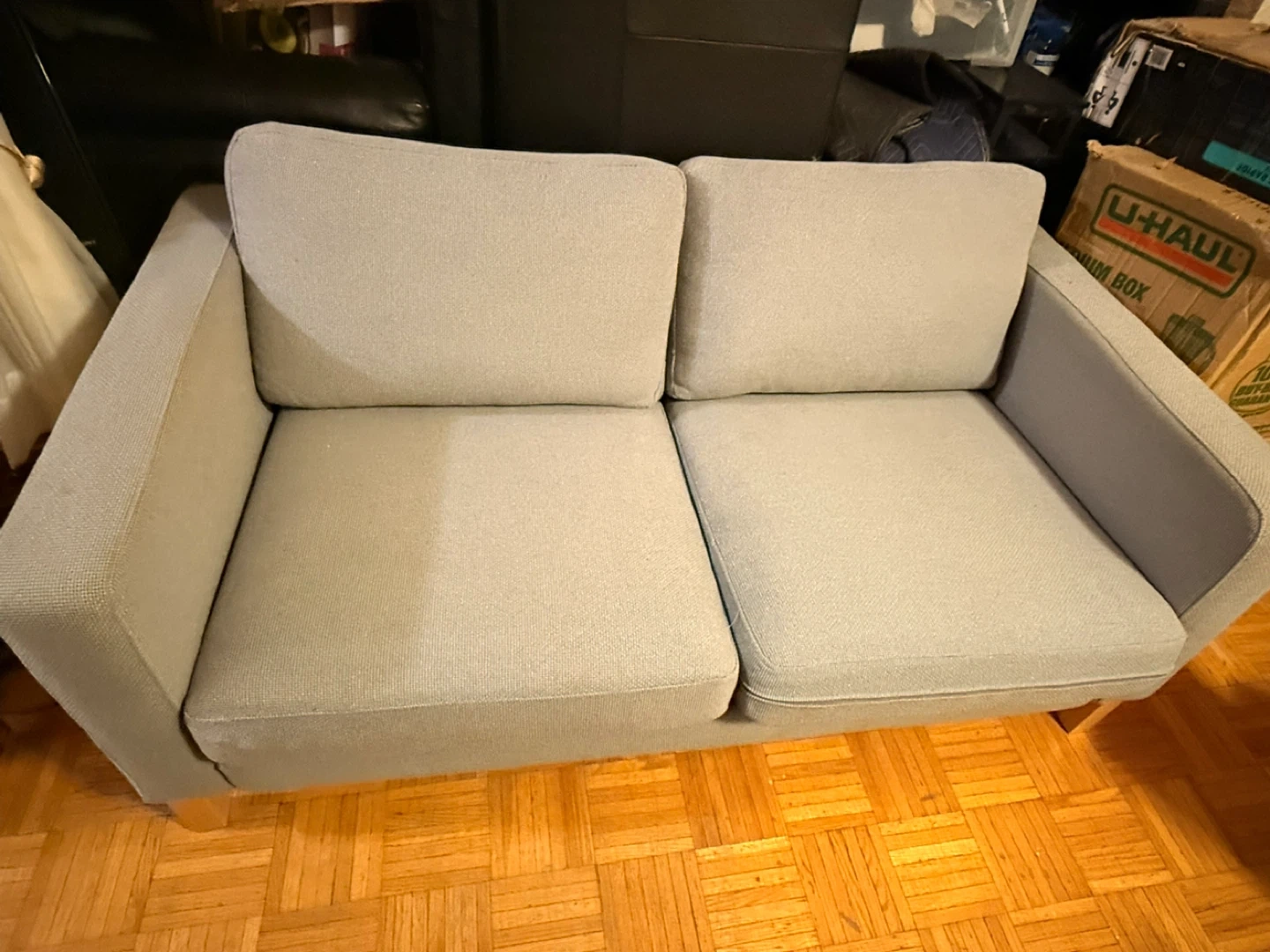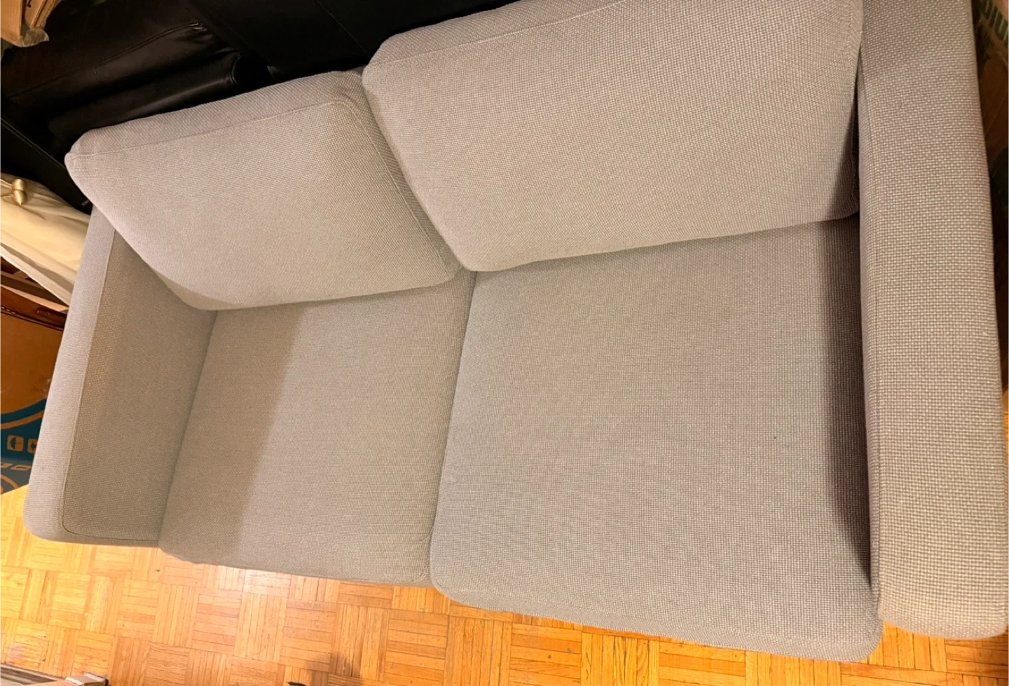 Selling a loveseat sofa in a light grey colour. It's in great condition and would be a perfect addition to any living space!