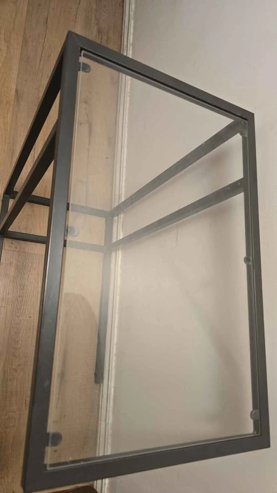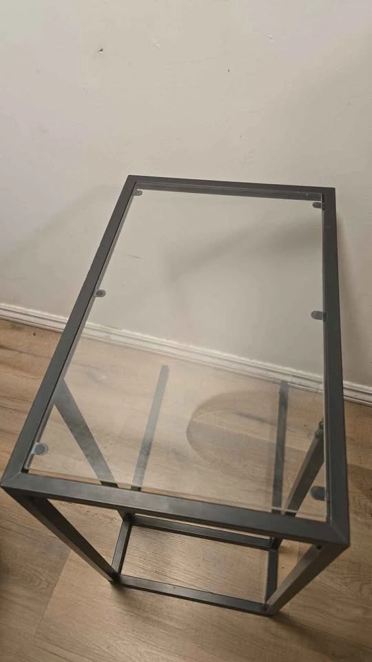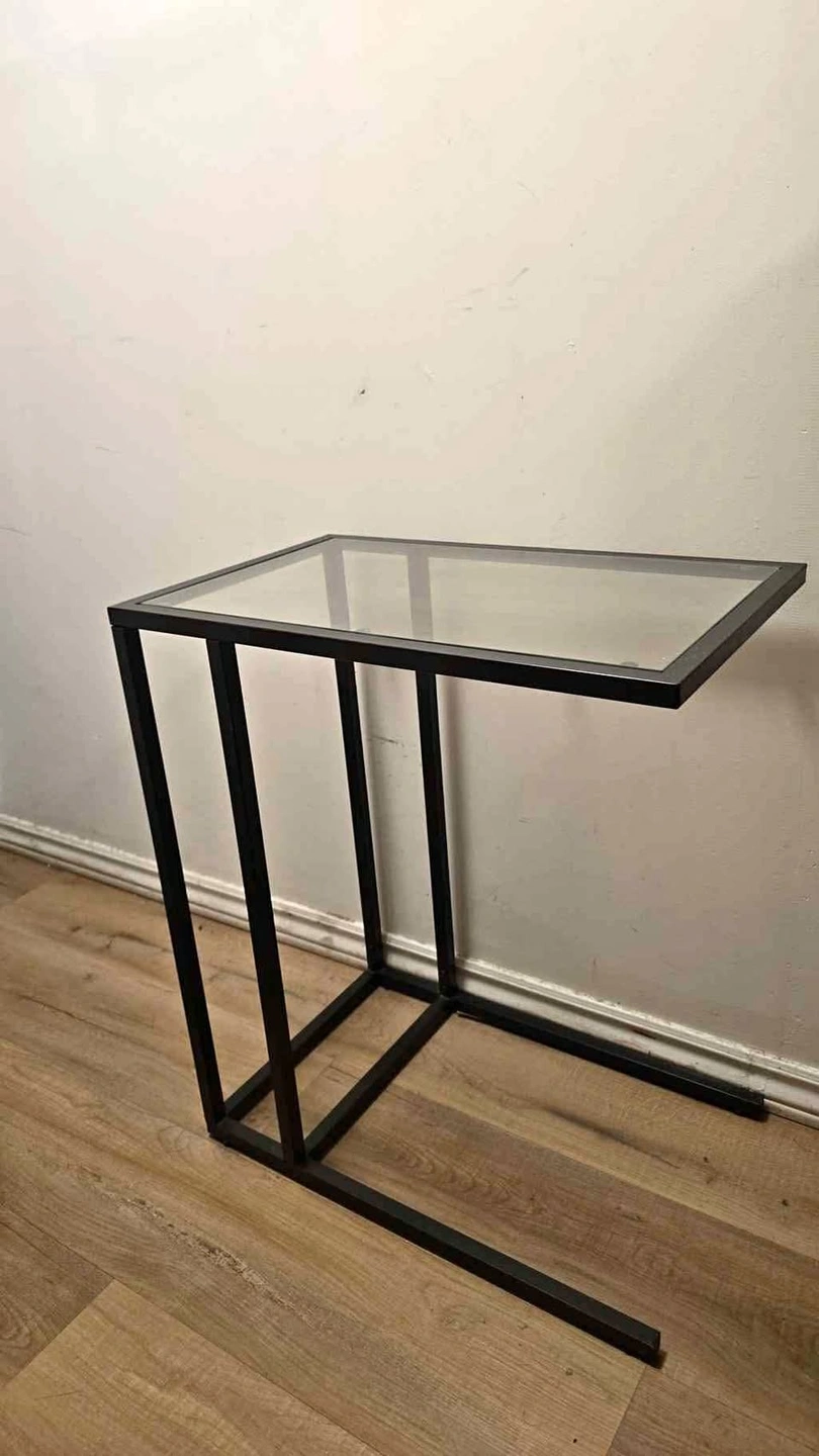 Minimalist and stylish VITTSJÖ laptop stand from IKEA. Features a sturdy metal frame with a glass top, perfect for working, reading, or keeping beside your couch or bed. Excellent condition, no cracks or damage.