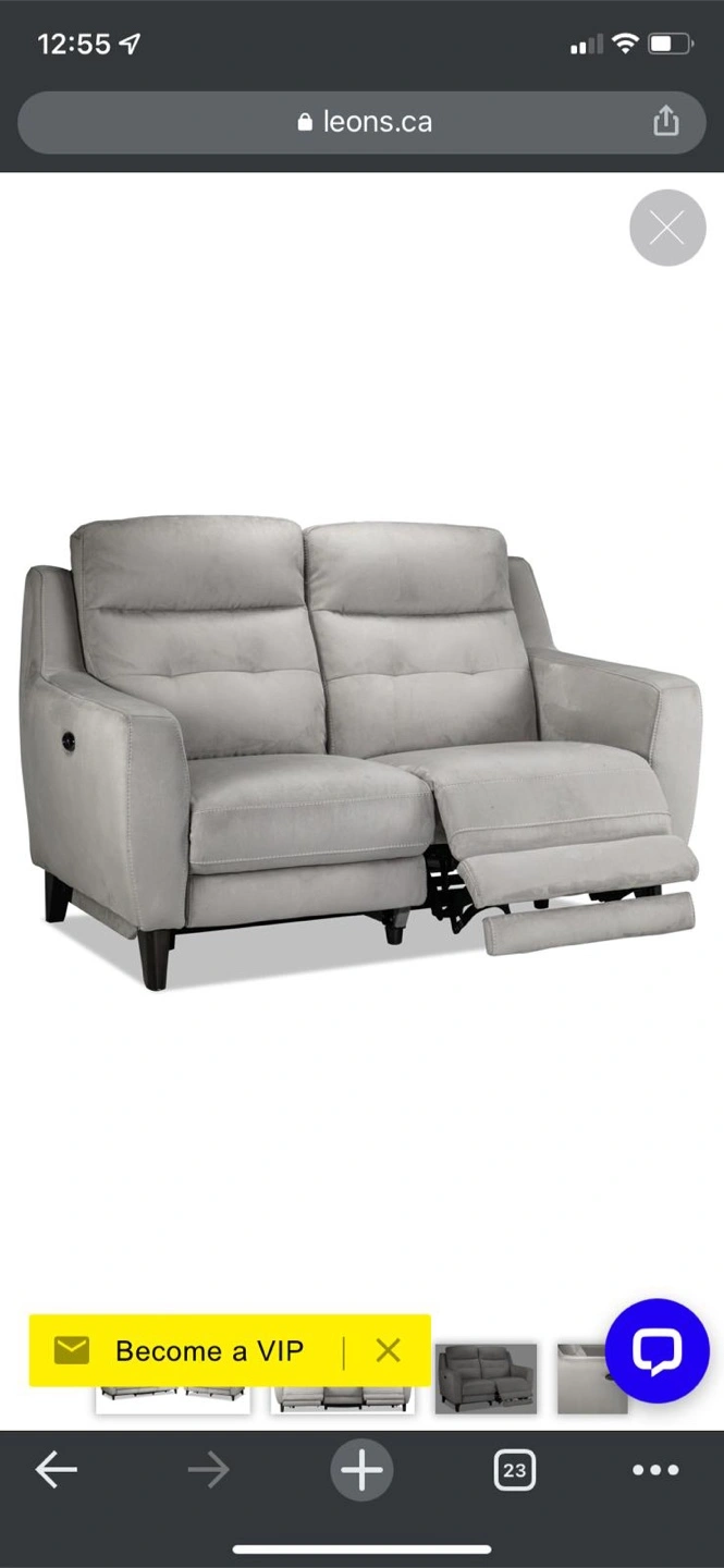 This contemporary 3-seat power reclining sofa was originally purchased for $3,614.86 and is now offered for $1,500.