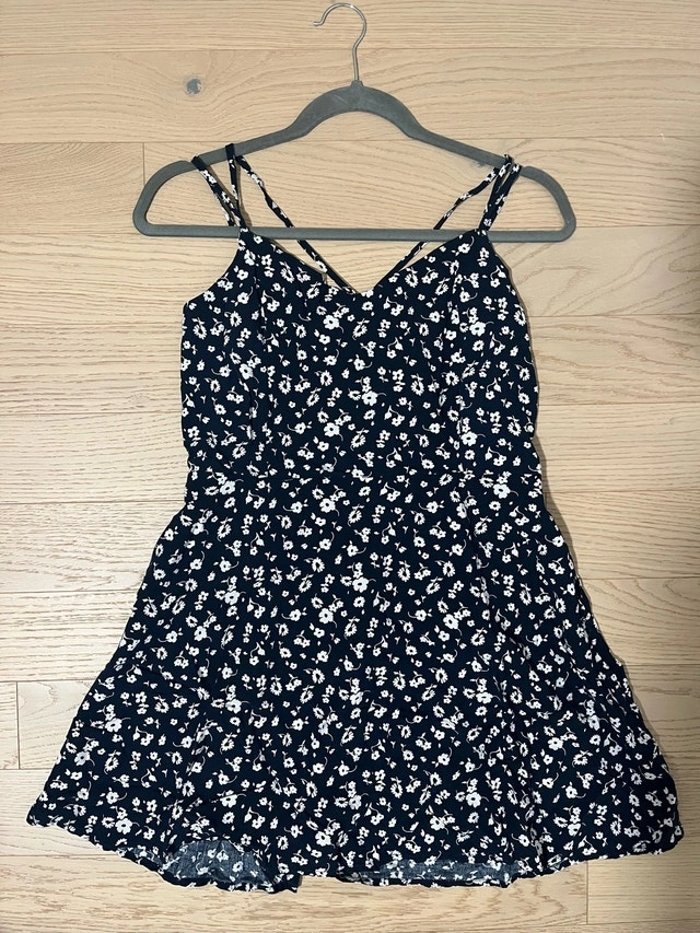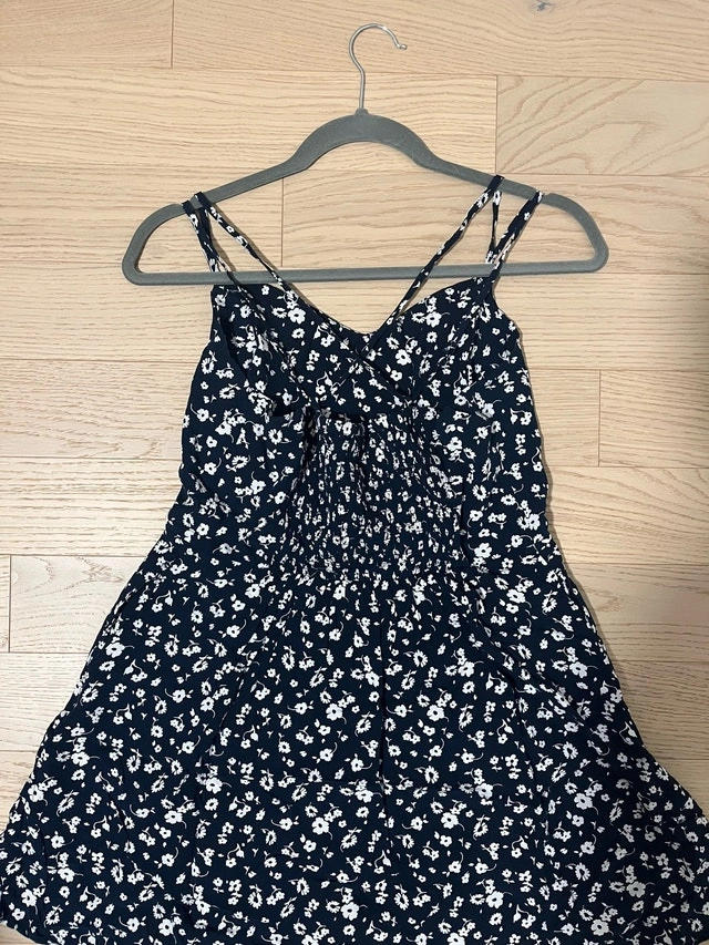6. Blue Floral Garage brand sundress (criss cross string, open back).
