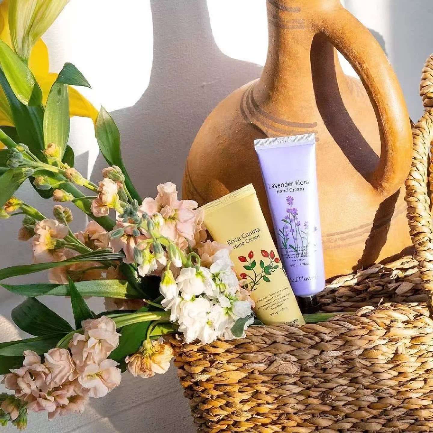 This set features five floral-scented hand creams: Lotus Bloom, Peony Blossom, Rosa Canina, Lavender Floral, and White Lily. Each tube contains 50g of hand cream. It's formulated to keep your dry hands soft and smooth.