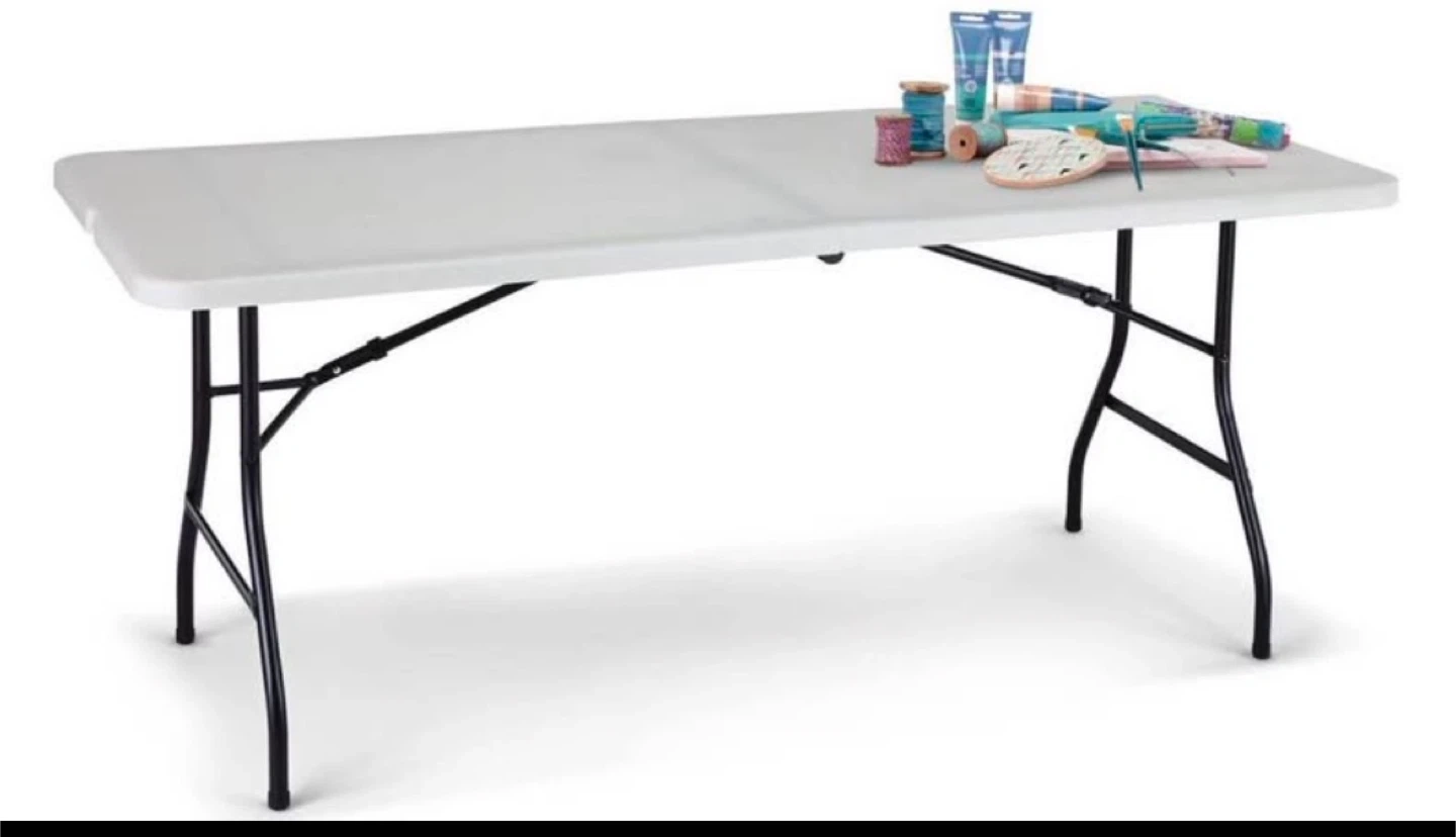 6 foot long and 29 inches wide White Folding Utility Table