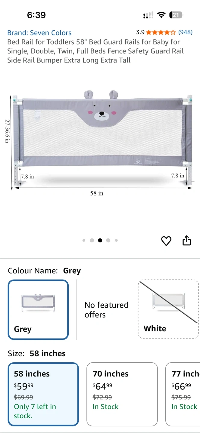 Seven Colors 58" Bed Rail for Toddlers