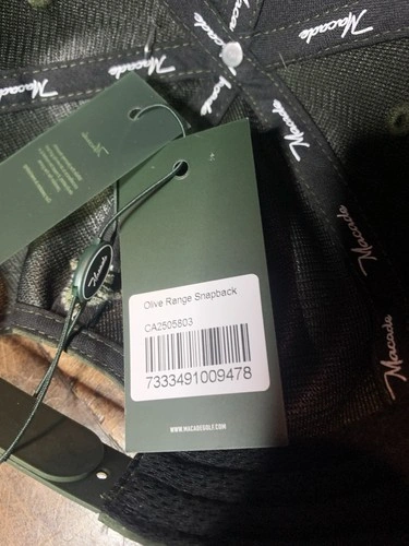 Brand new with tags Macade Golf Olive Range Snapback. This cap combines modern minimal design with performance comfort — perfect for the course, the range, or everyday wear. Condition: Brand New – Never Worn – With Original Tags. Brand: Macade Golf. Model: Olive Range Snapback. Color: Olive Green. Fit: Adjustable Snapback (One Size Fits Most). Style: Structured 6-Panel Golf Cap. Features a clean tonal "Macade" embroidered front logo and subtle orange "GOLF" embroidery detail on the side. Made with premium lightweight performance fabric for a comfortable, structured fit with a modern, athletic aesthetic. Adjustable snapback closure for a custom fit. This hat offers a sleek, understated look that pairs perfectly with any golf outfit. Designed for comfort and breathability, it’s ideal for long rounds or casual wear off the course. A great addition to any golfer’s collection — or a perfect gift. Feel free to message with any questions!