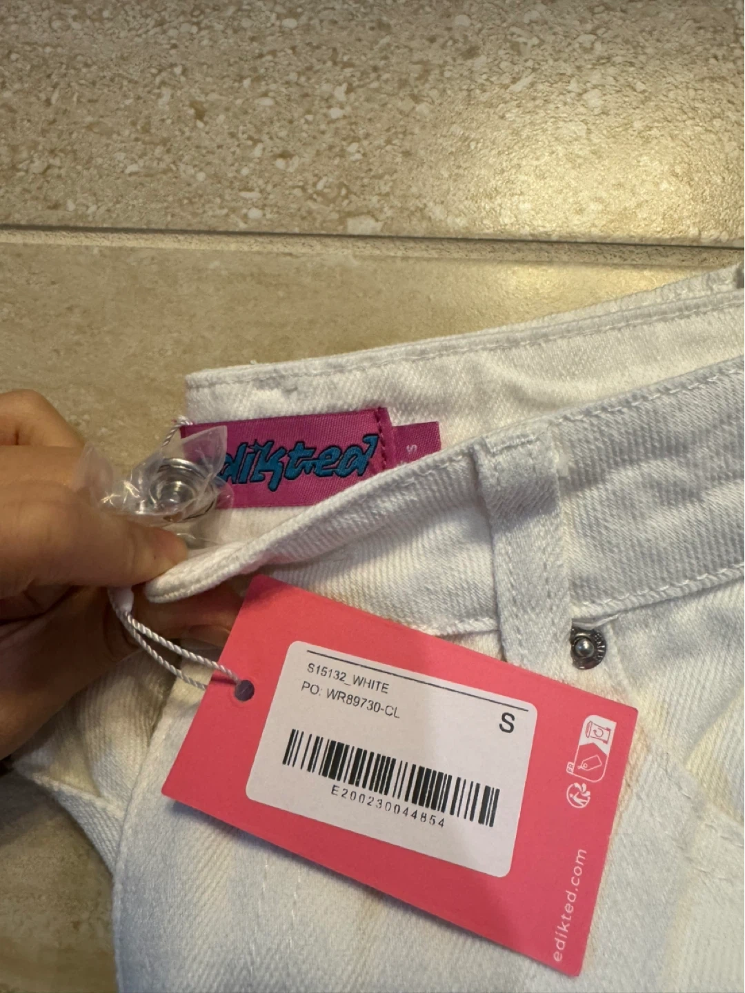 These are Edikted white wide leg jeans. Size S. Made from a cotton blend material. BRAND NEW WITH TAG