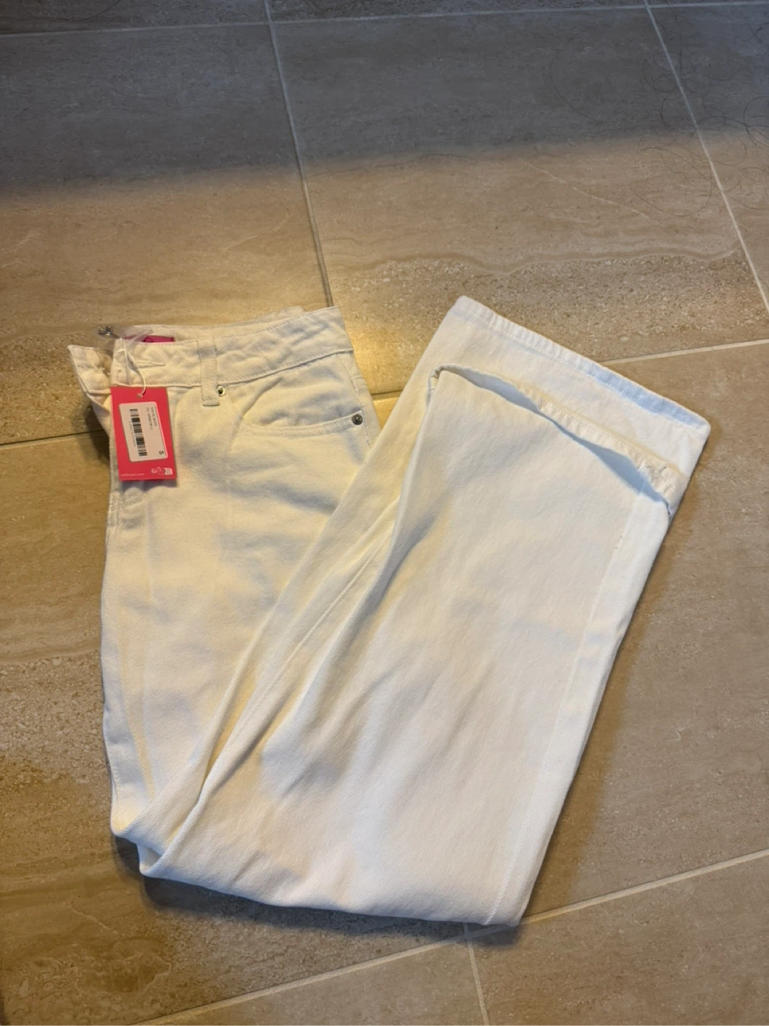 These are Edikted white wide leg jeans. Size S. Made from a cotton blend material. BRAND NEW WITH TAG