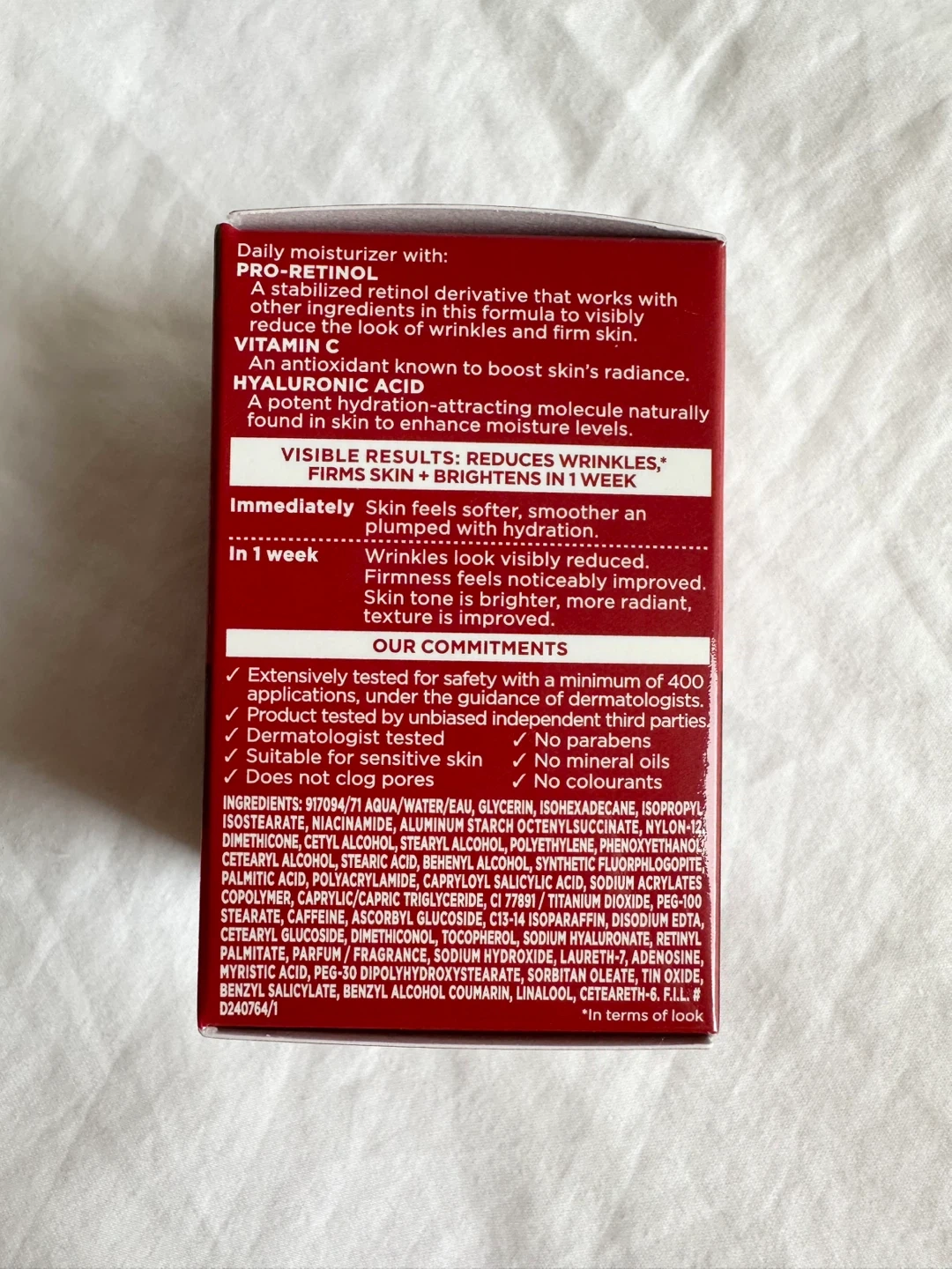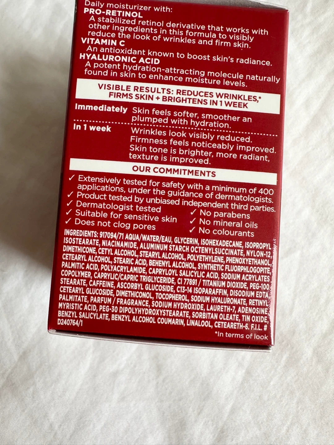 Formulated with Pro-Retinol, Vitamin C and Hyaluronic Acid.
