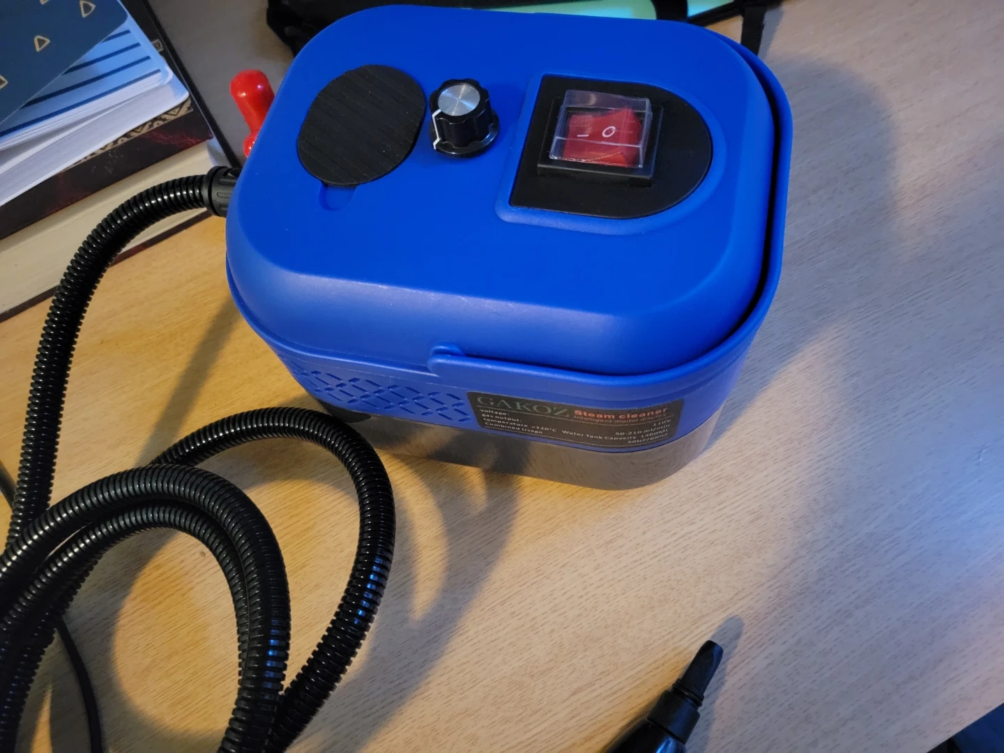 This GAKOZ steam cleaner is designed for high-temperature cleaning. It comes with various attachments and an instruction manual for easy operation. A handy tool for tackling tough grime!