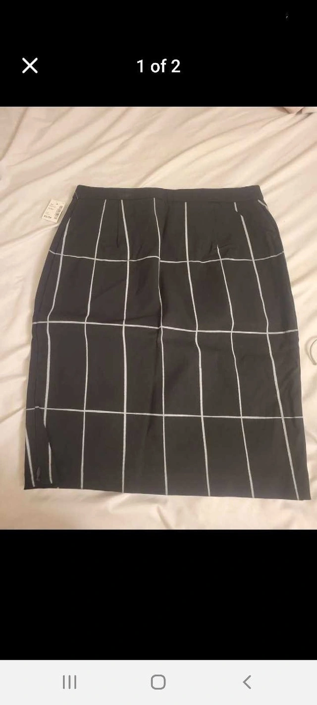 This skirt is brand new with tags and features a stylish black and white grid pattern, perfect for adding a touch of sophistication to any outfit. It is size extra small. Size: XS, Colour: Black and White, Pattern: Grid. While I can't guarantee this skirt will turn you into a fashion icon overnight, I can promise it will make you look effortlessly chic. Don't miss out on this stylish piece! If the ad is up, it's still available!