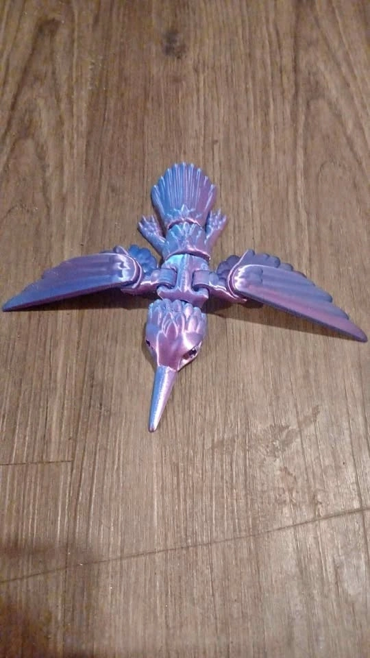 3D Printed Articulated Hummingbird Iridescent Purple Blue