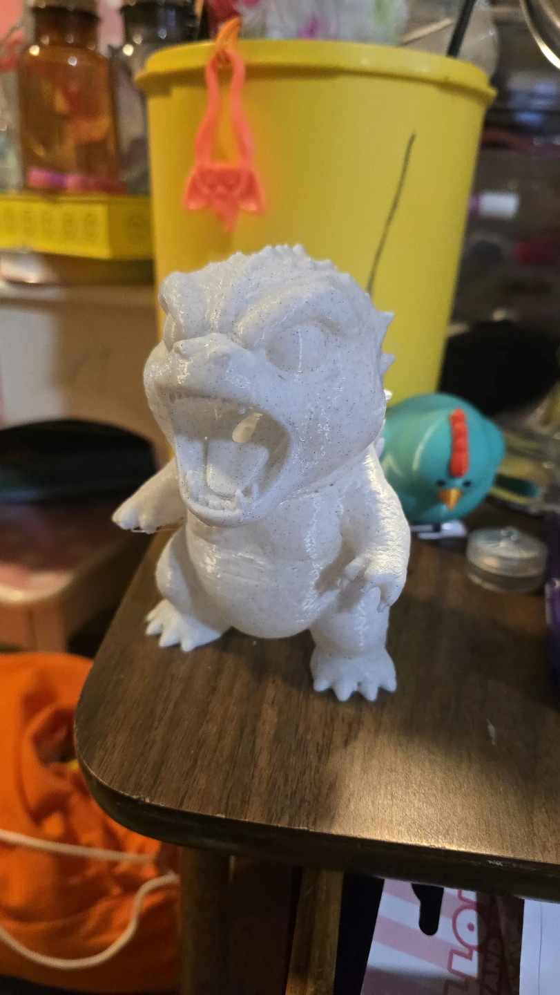 Here's a cool 3D printed figure of Godzilla! It's a unique piece and would make a great addition to any collection or as a fun desk ornament