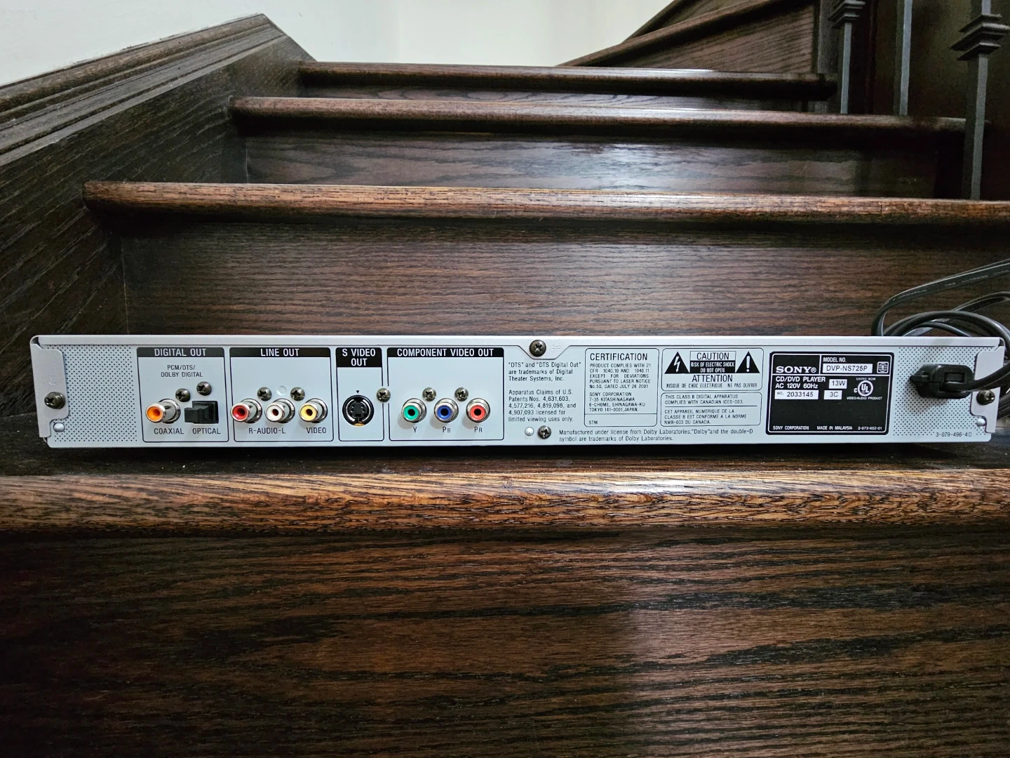 Sony CD/DVD Player DVP-NS725P. Progressive scan and Precision Cinema Progressive. Includes digital out, line out, S-video out, and component video out.