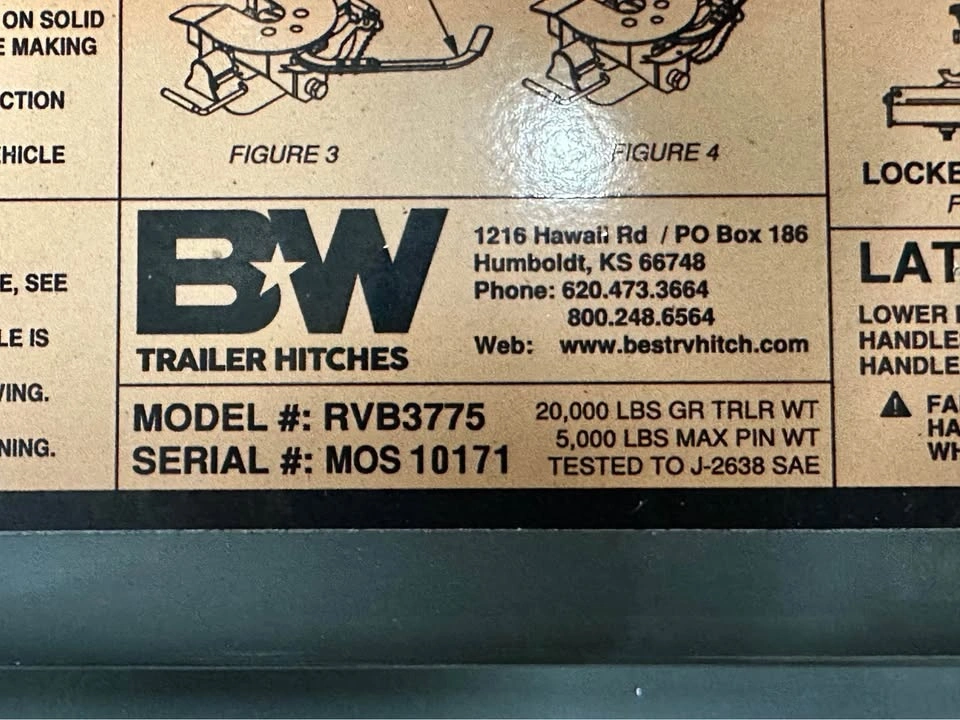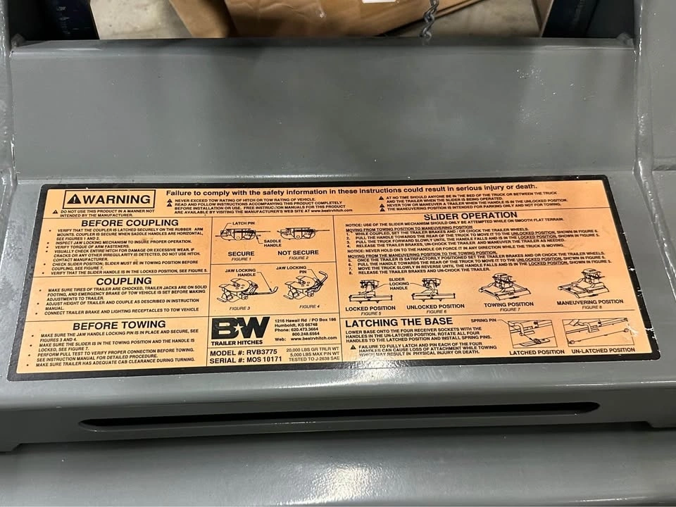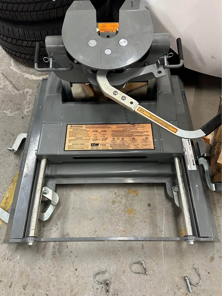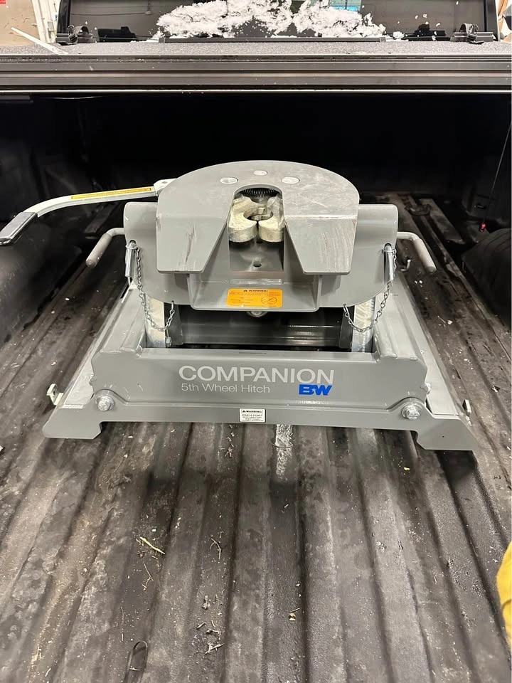 This B&W Trailer Hitch RVB3775 Companion OEM Fifth Wheel Trailer Hitch Slider Base was previously installed on a 2023 GMC Sierra 2500HD. It is in like-new condition. Please see photos for details.
