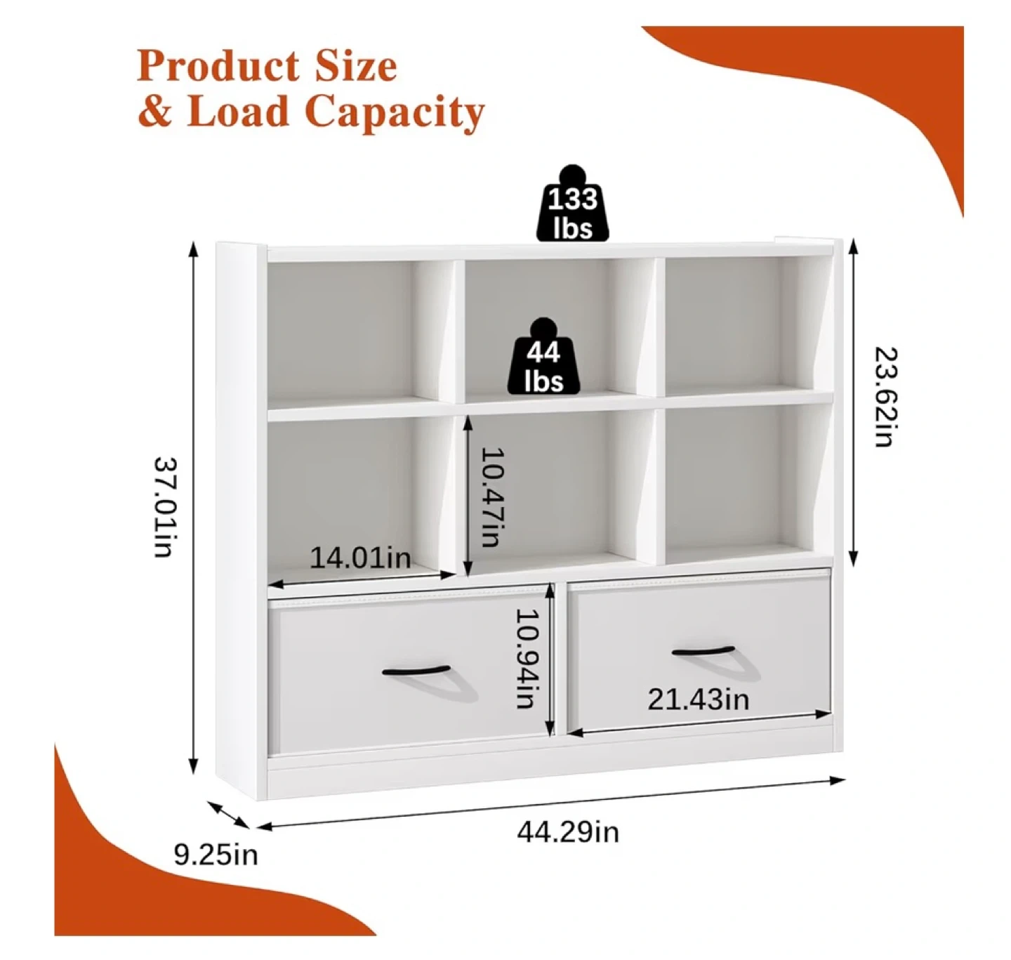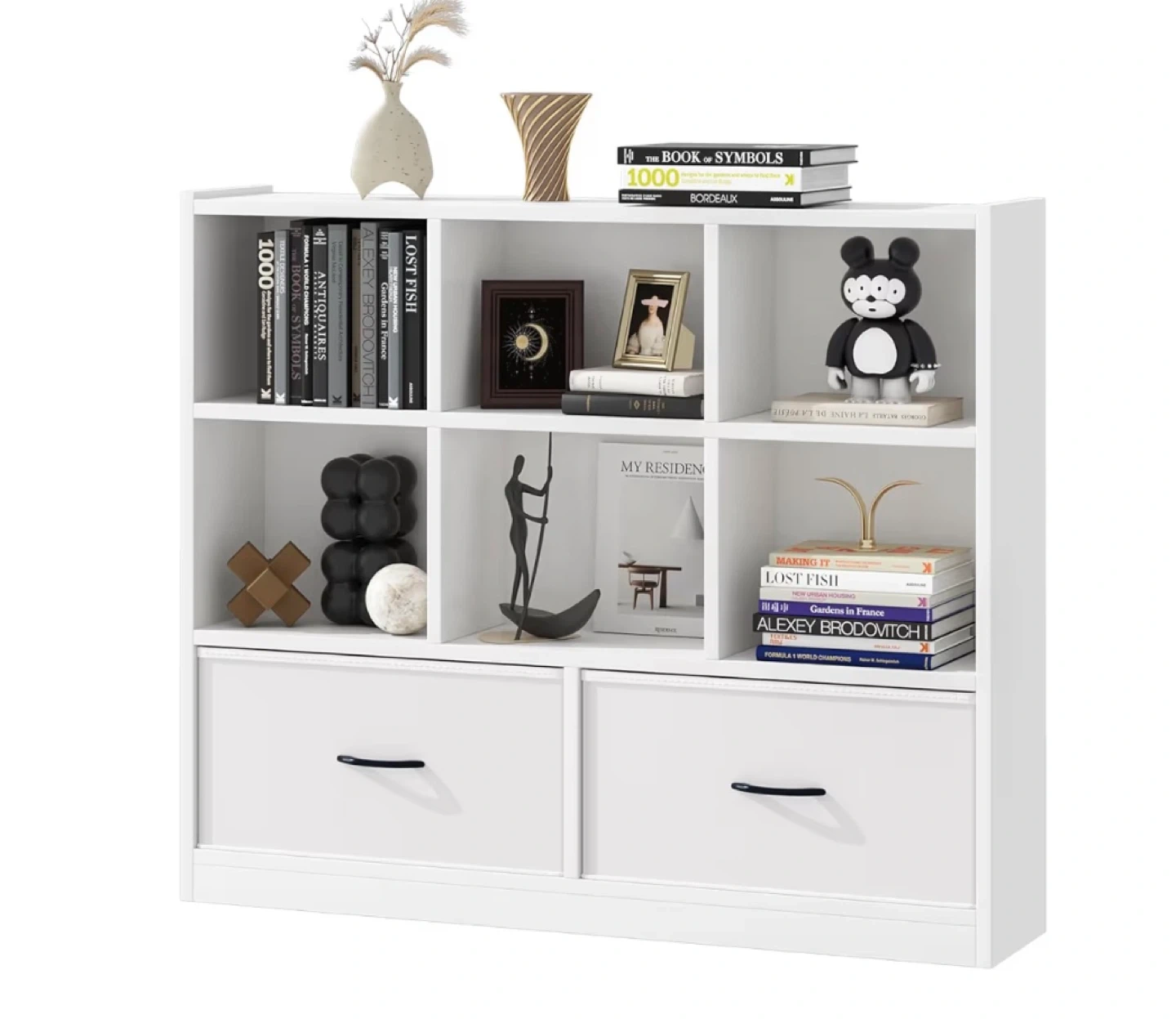 White 6-Cube Bookshelf with 2 Drawers