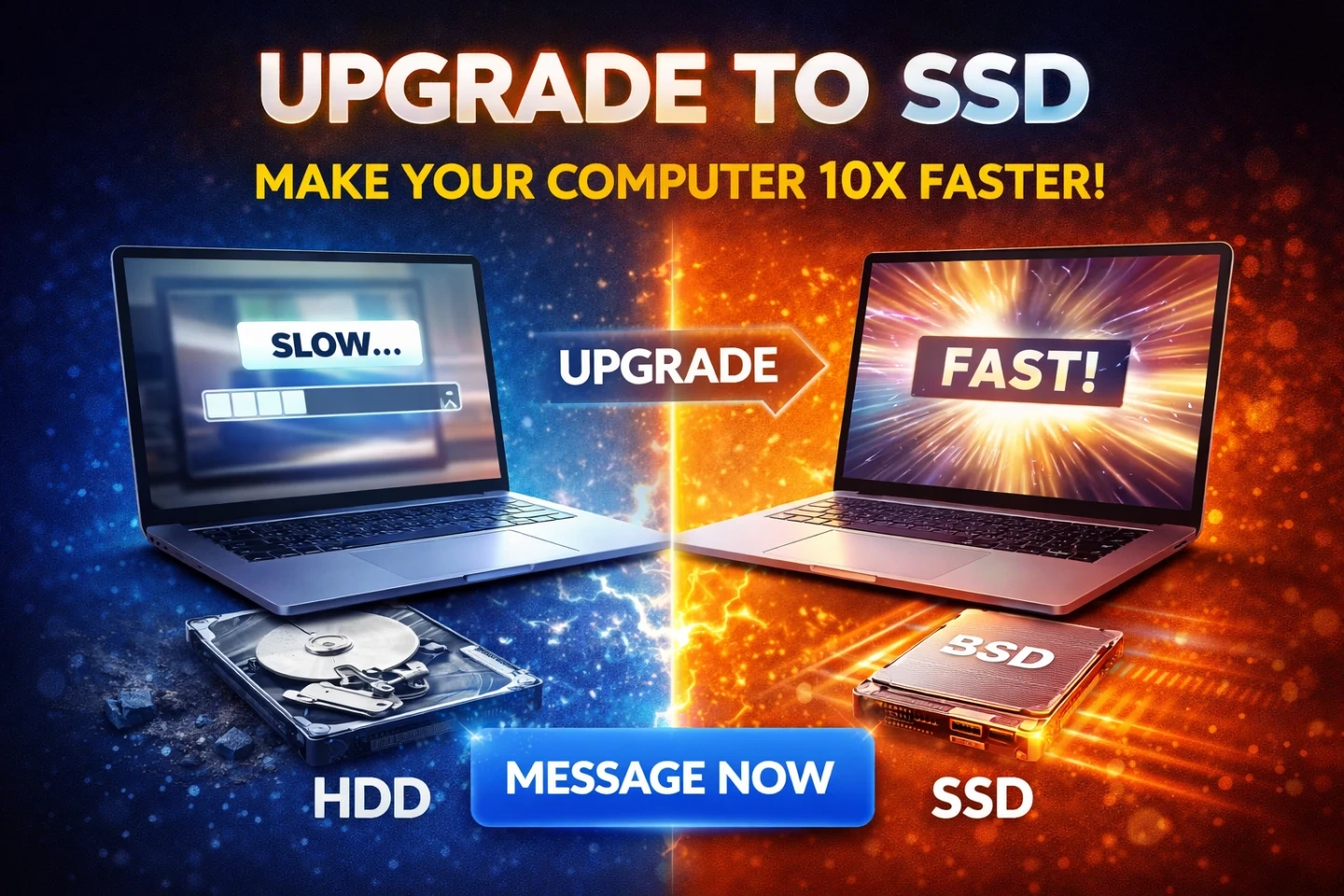 Upgrade your computer from HDD to SSD and make it run up to 10x faster! Experience significantly quicker boot times and application loading. This upgrade is great for anyone looking to boost their computer's performance.