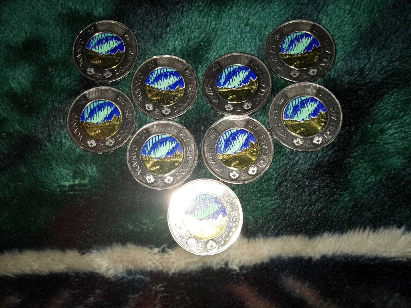 This listing is for a ten 2017 Canadian $2 coins featuring the Aurora Borealis. These coins are part of Canada's currency. They're great for collectors or as a unique keepsake from Canada. Yes that is one snow capped! All are uncirculated! Let's hear some offers.