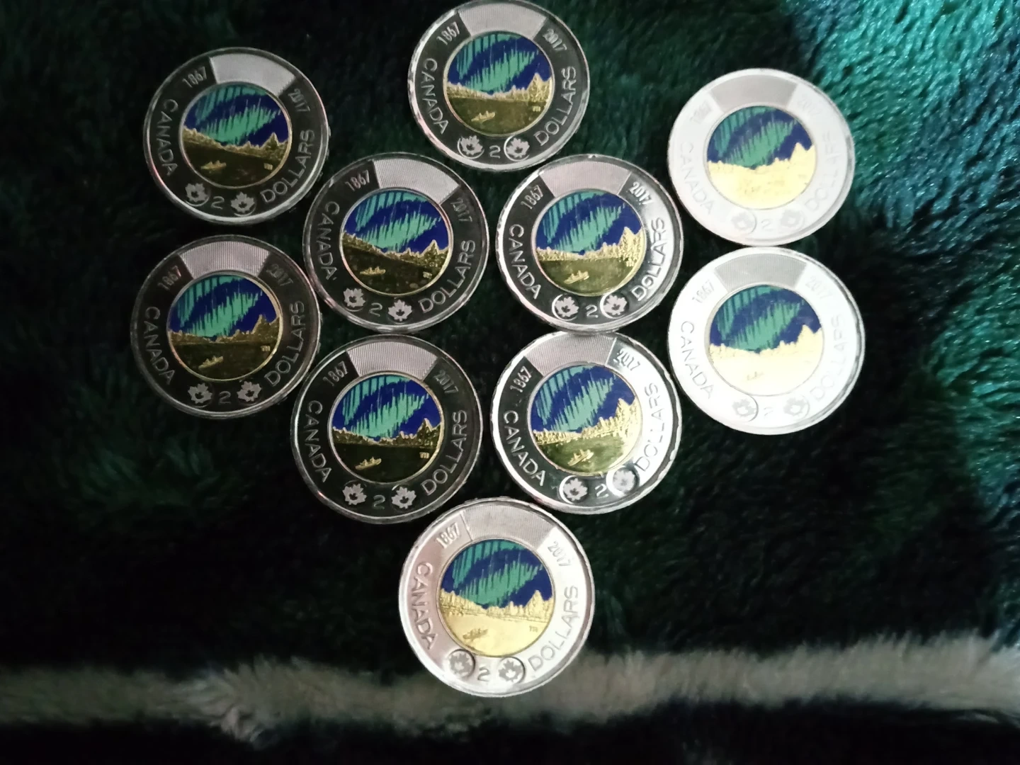 Collection of 10 Canada 2 Dollar Coins - 2017 Aurora Borealis