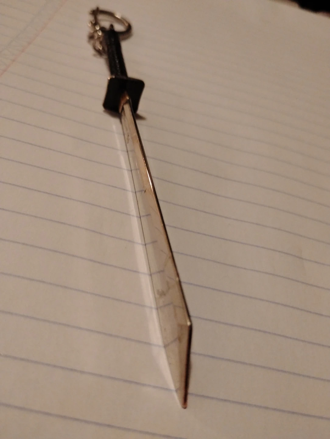 This is a Fortnite Dual Katana keychain. It features a gold-coloured blade with black handle detail. Includes a keyring and a clip for attachment.