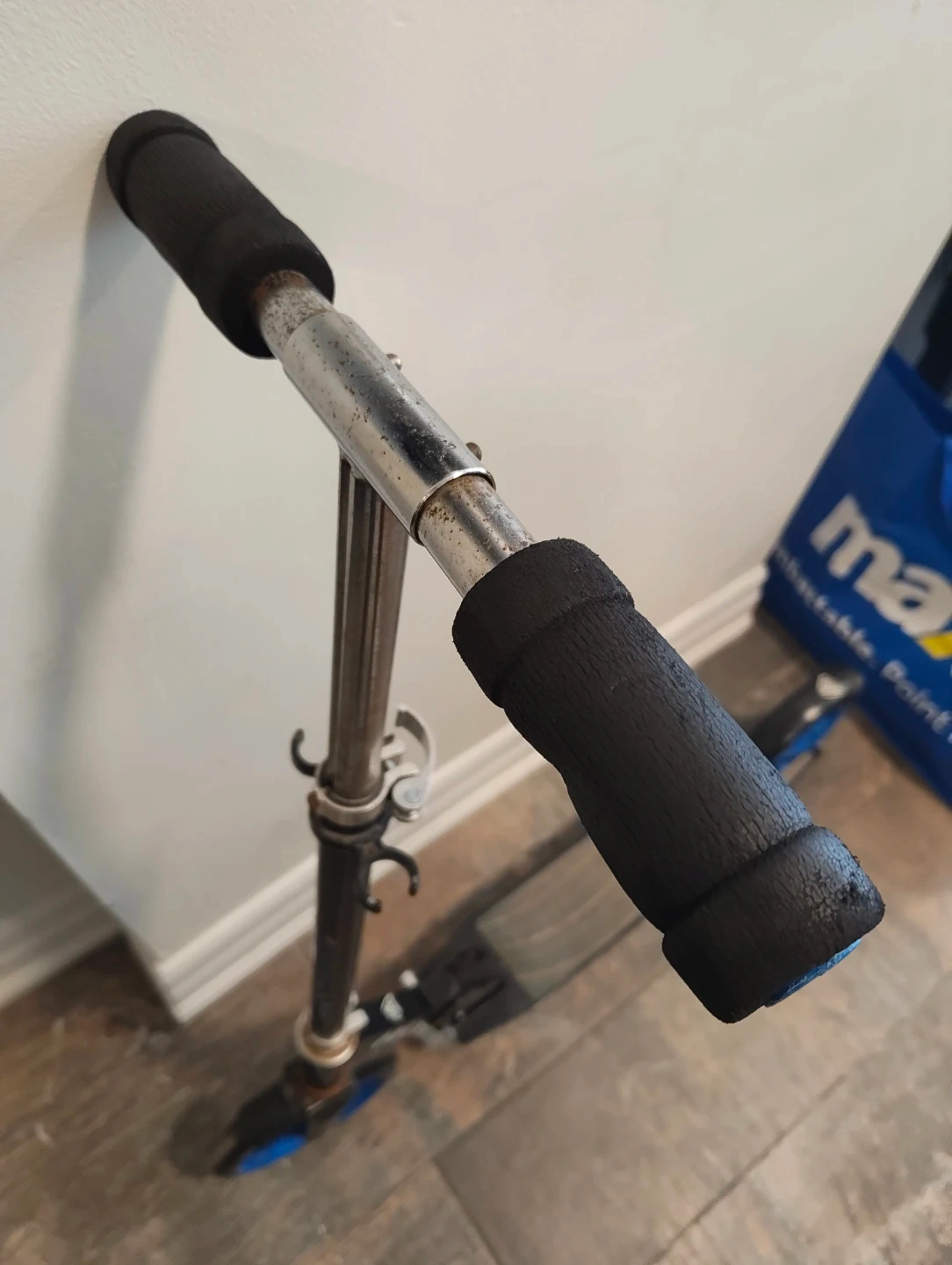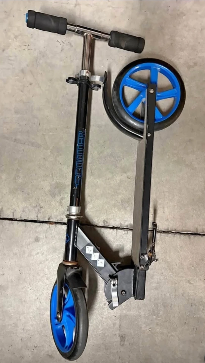 Selling a Gedouner scooter in black and blue.