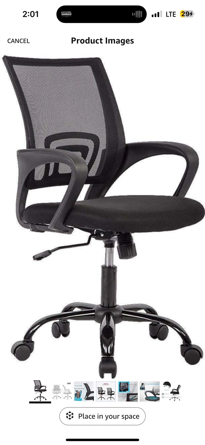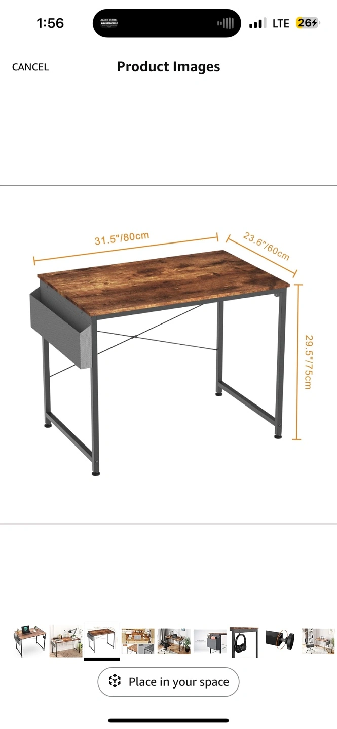 BRAND NEW!! Table alone $90 chair alone $50, BOTH $130 only! Brown computer desk with storage and a black mesh office chair with adjustable height. The desk has black metal legs and a grey storage compartment. The chair has black fabric and wheels.