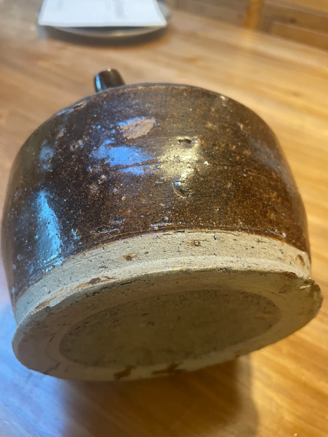 This is an antique Chinese glazed ceramic pot, often identified as a soy sauce or vinegar jug, commonly used for storing and transporting fermented staples.