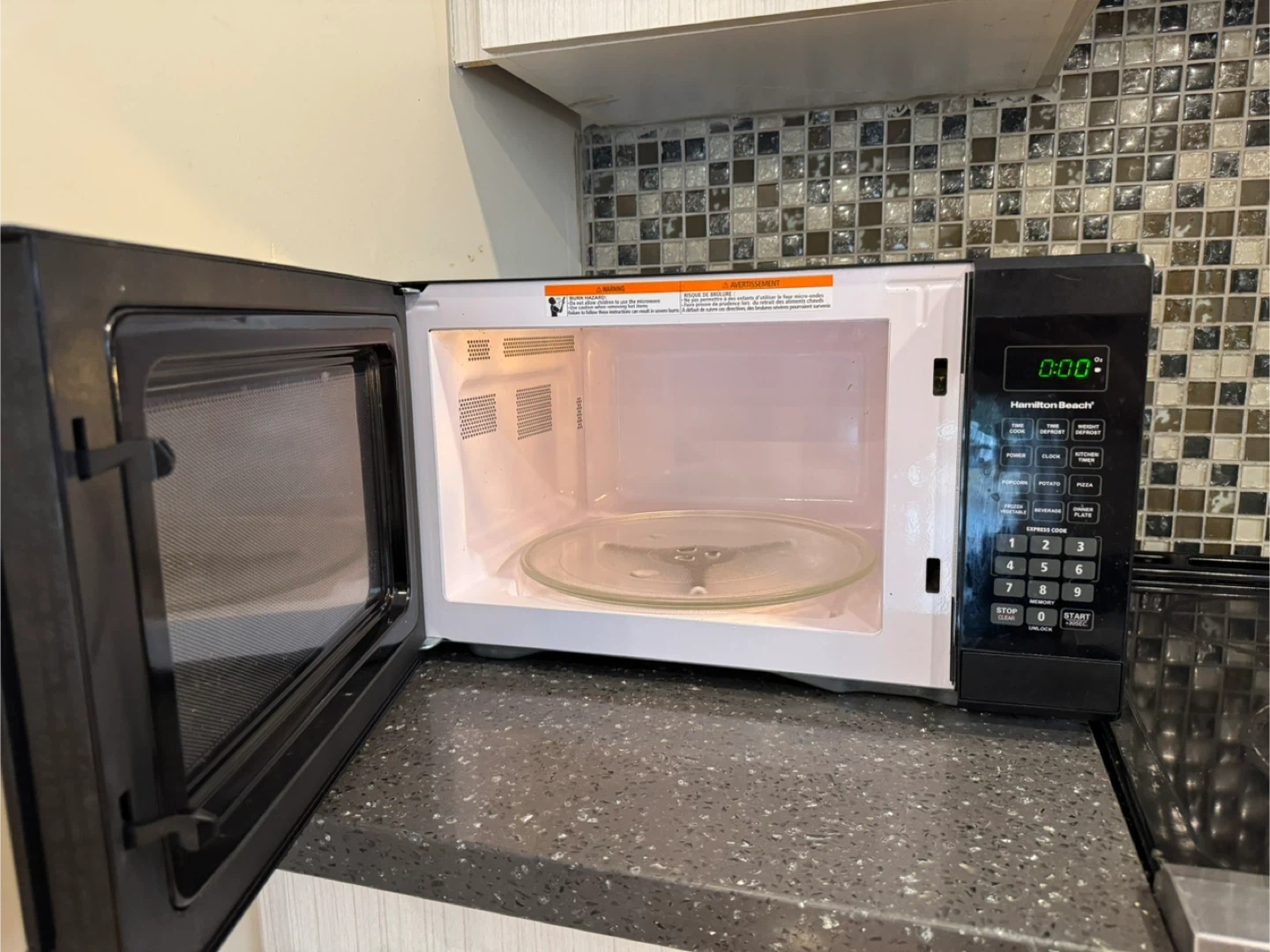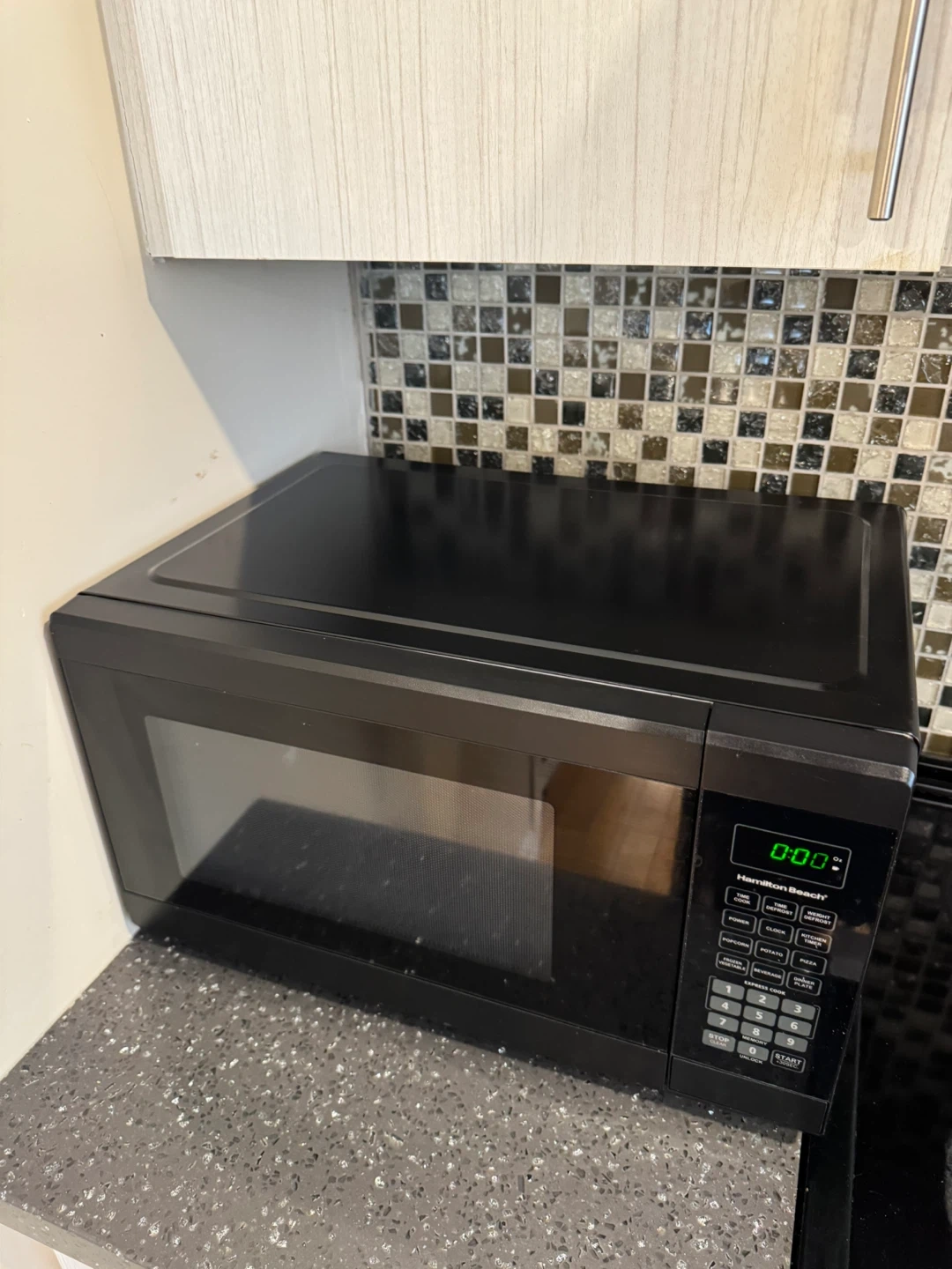 Selling a Hamilton Beach microwave in black. It's in perfect condition and ready for a new kitchen. Perfect for quick meals and reheating leftovers!