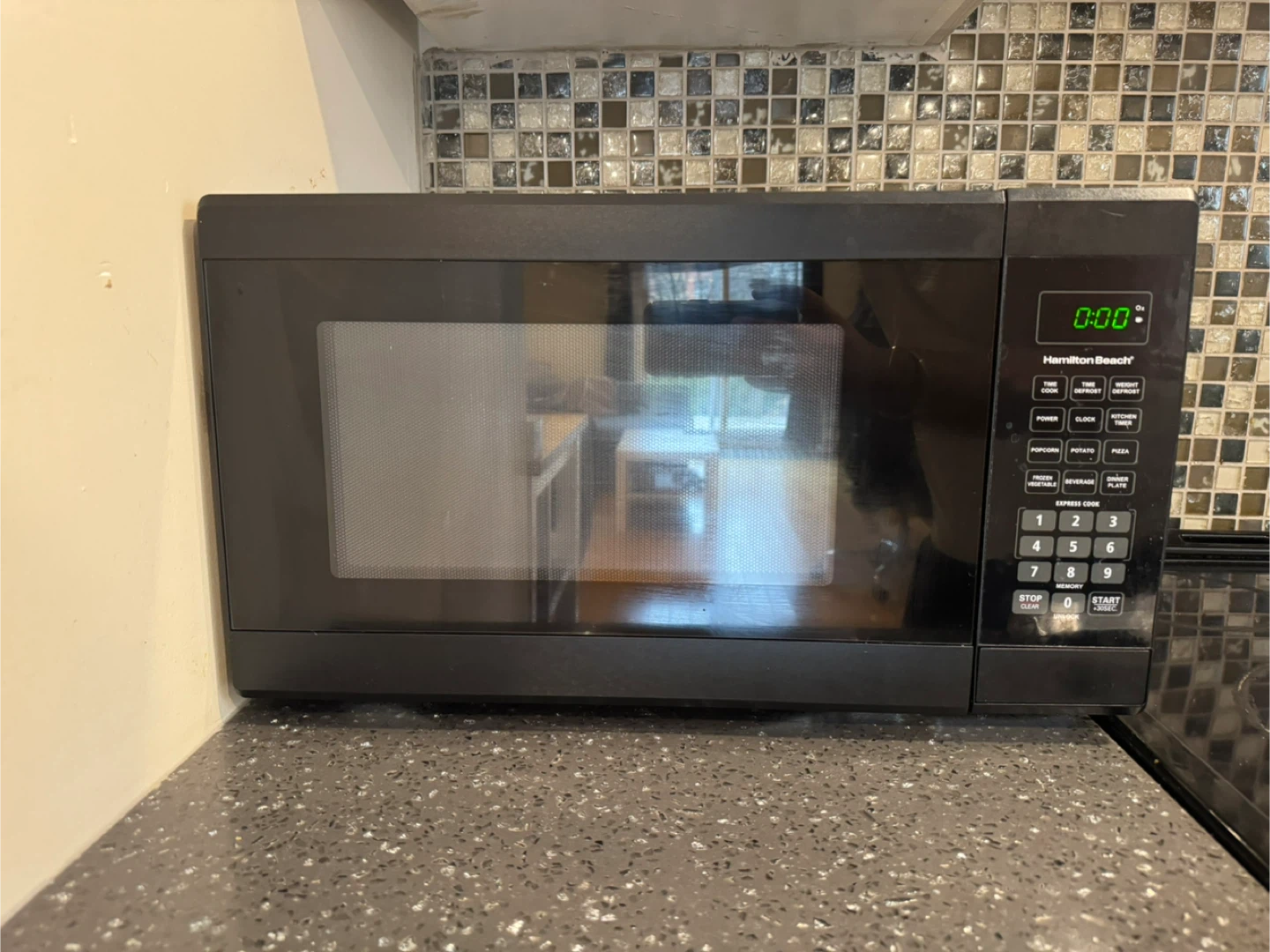 Selling a Hamilton Beach microwave in black. It's in perfect condition and ready for a new kitchen. Perfect for quick meals and reheating leftovers!