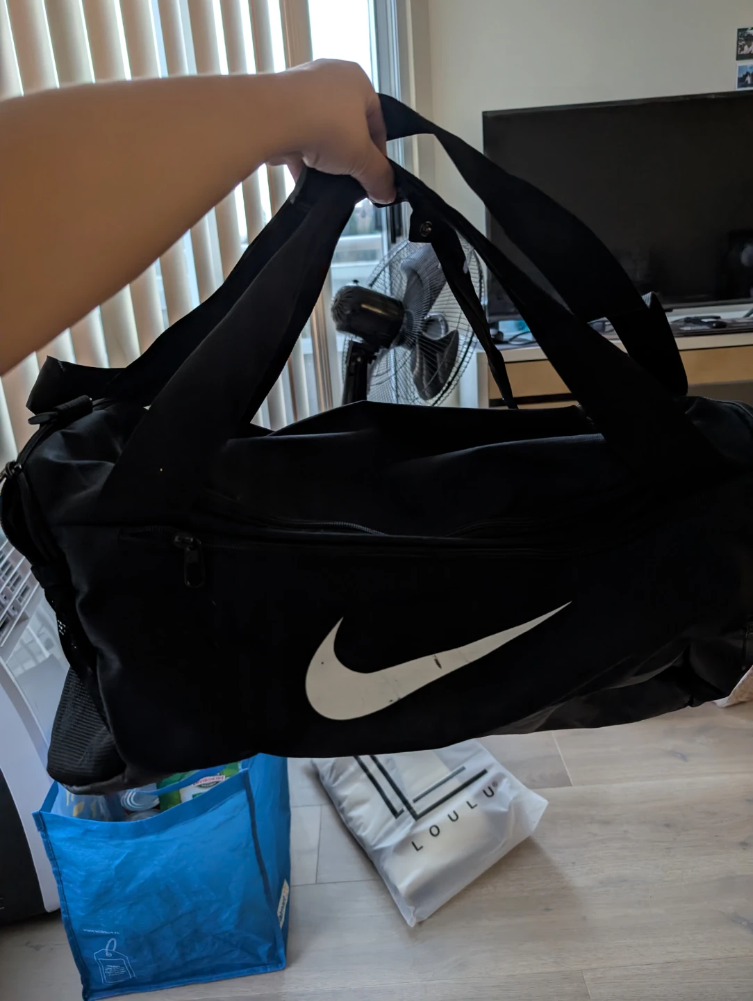 Buy & SellNike Black Duffle BagNike Black Duffle Bag$5Selling a black Nike duffle bag! It's in great shape and ready for your gym gear or weekend tripsConditionLike newWHERE TO MEETJoyce CollingwoodView MapSELLERverifiedBloomJoyce Collingwood1539 reviews5 chats·6 favorites·50 viewsSEND CHAT TO SELLERHi Bloom! I’m interested in your listing.Hi Bloom! I’m interested in your listing.Get the Karrot app to chatSign In to chat