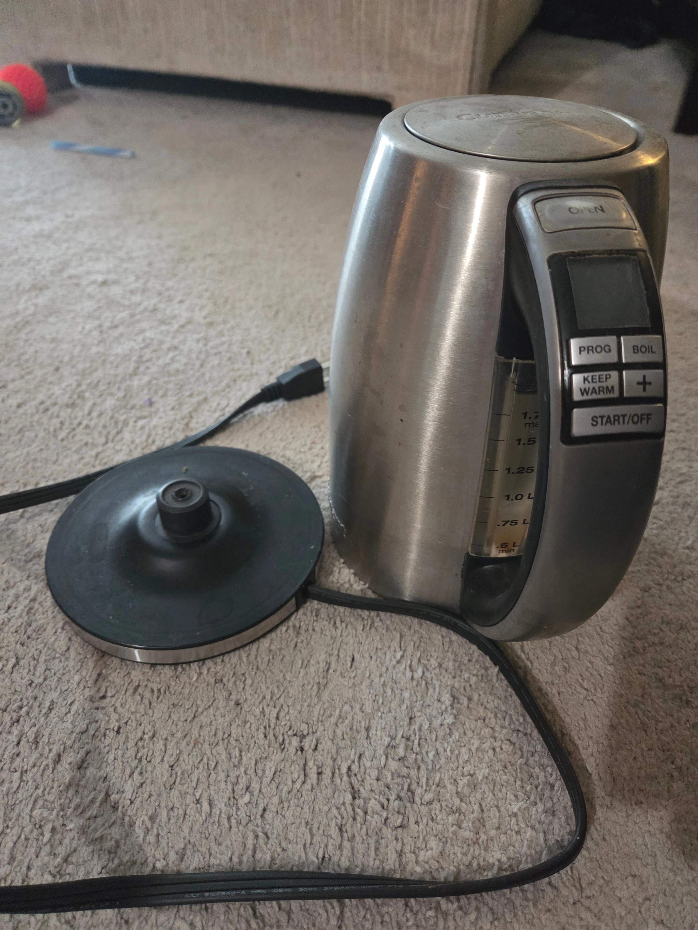 Selling a Cuisinart PerfecTemp (CPK-17C) 1.7L Programmable Kettle. This is the top-tier model with 6 temperature presets for different types of tea and coffee. Used sparely, works great. I have an additional base power unit I can throw in for free.