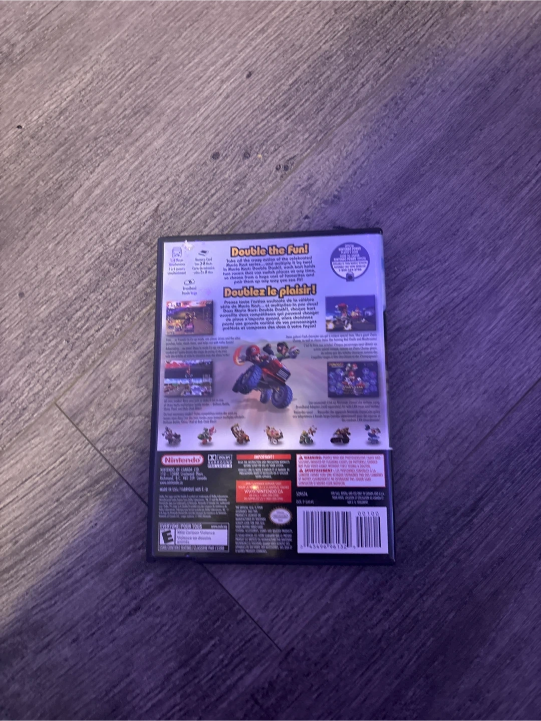 Mario Kart: Double Dash!! for the Nintendo GameCube. It's a thrilling racing game with iconic characters. The game includes the case and disc.