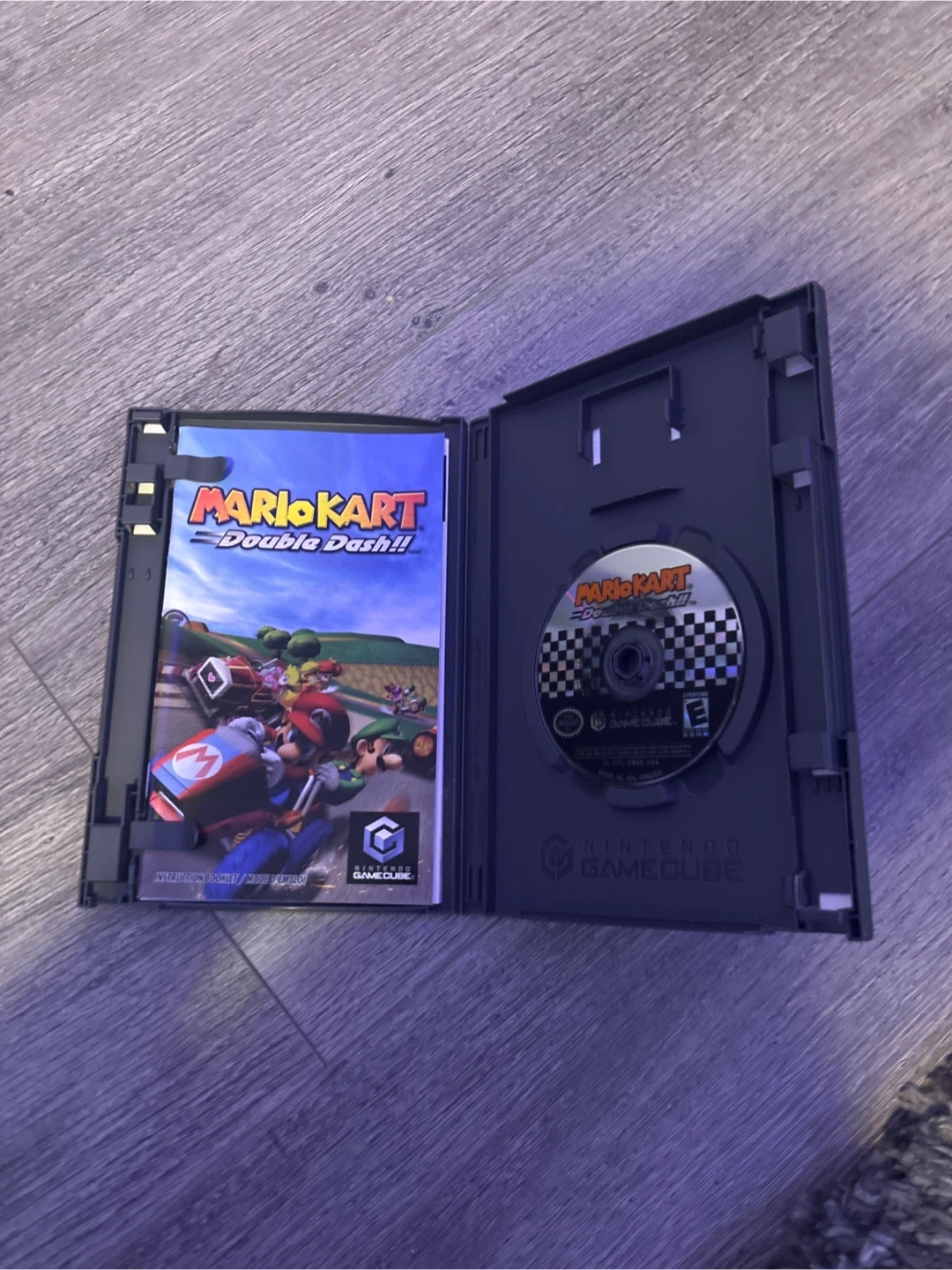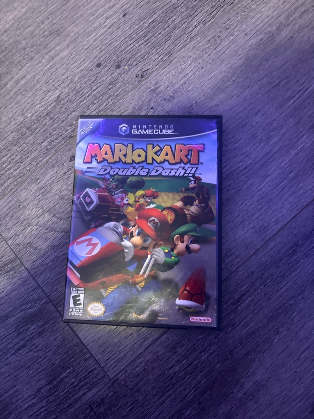 Mario Kart: Double Dash!! for the Nintendo GameCube. It's a thrilling racing game with iconic characters. The game includes the case and disc.