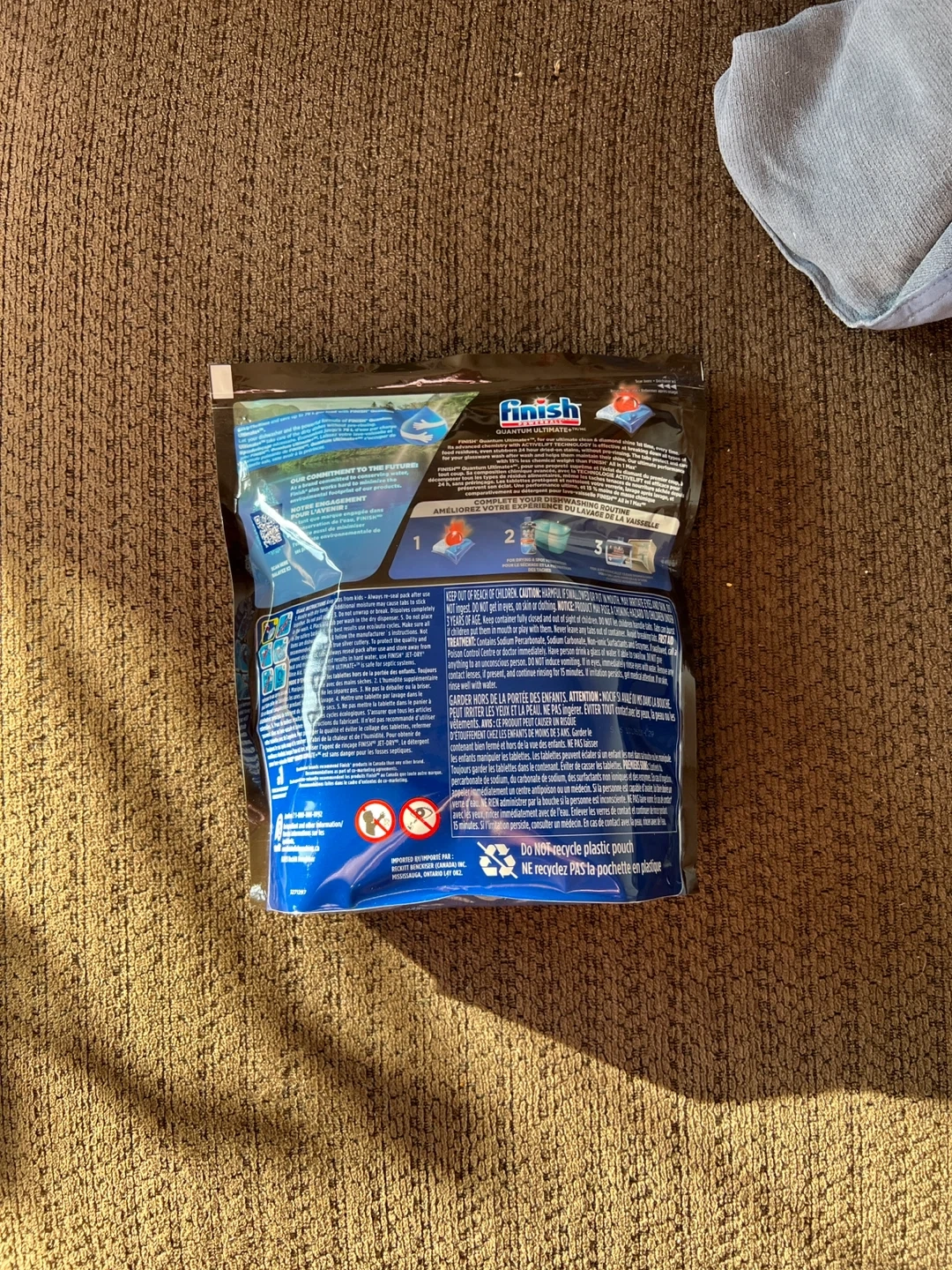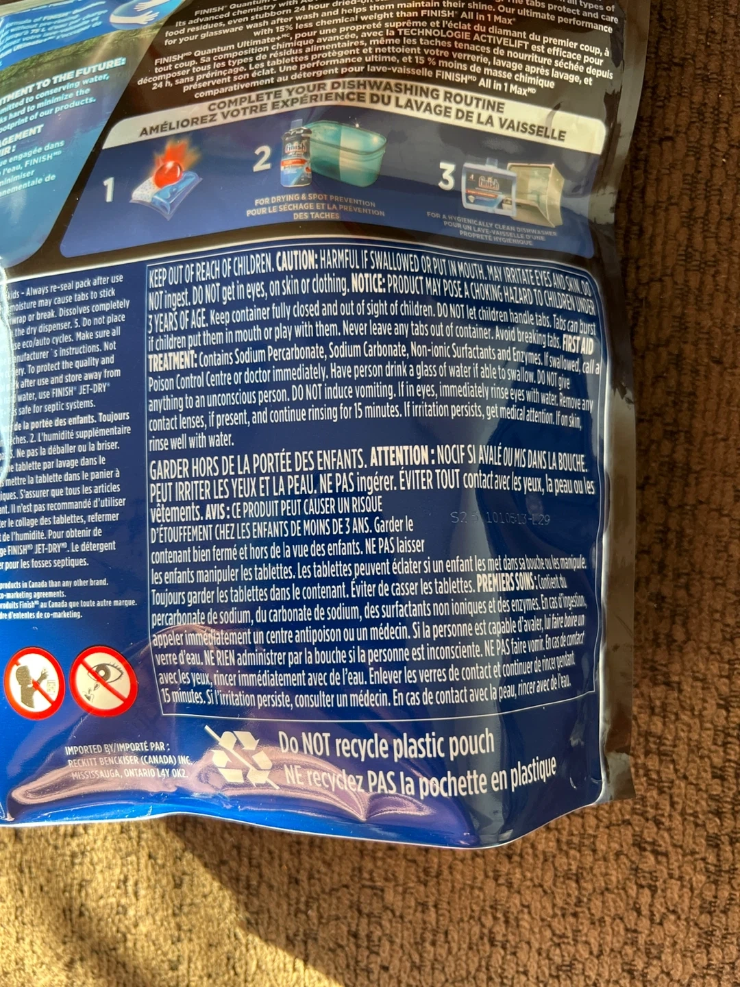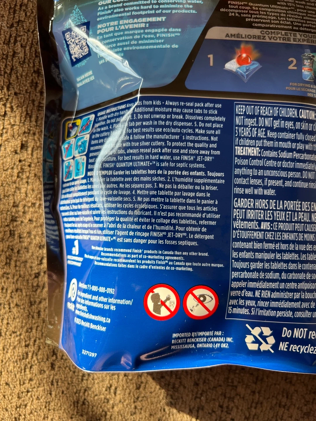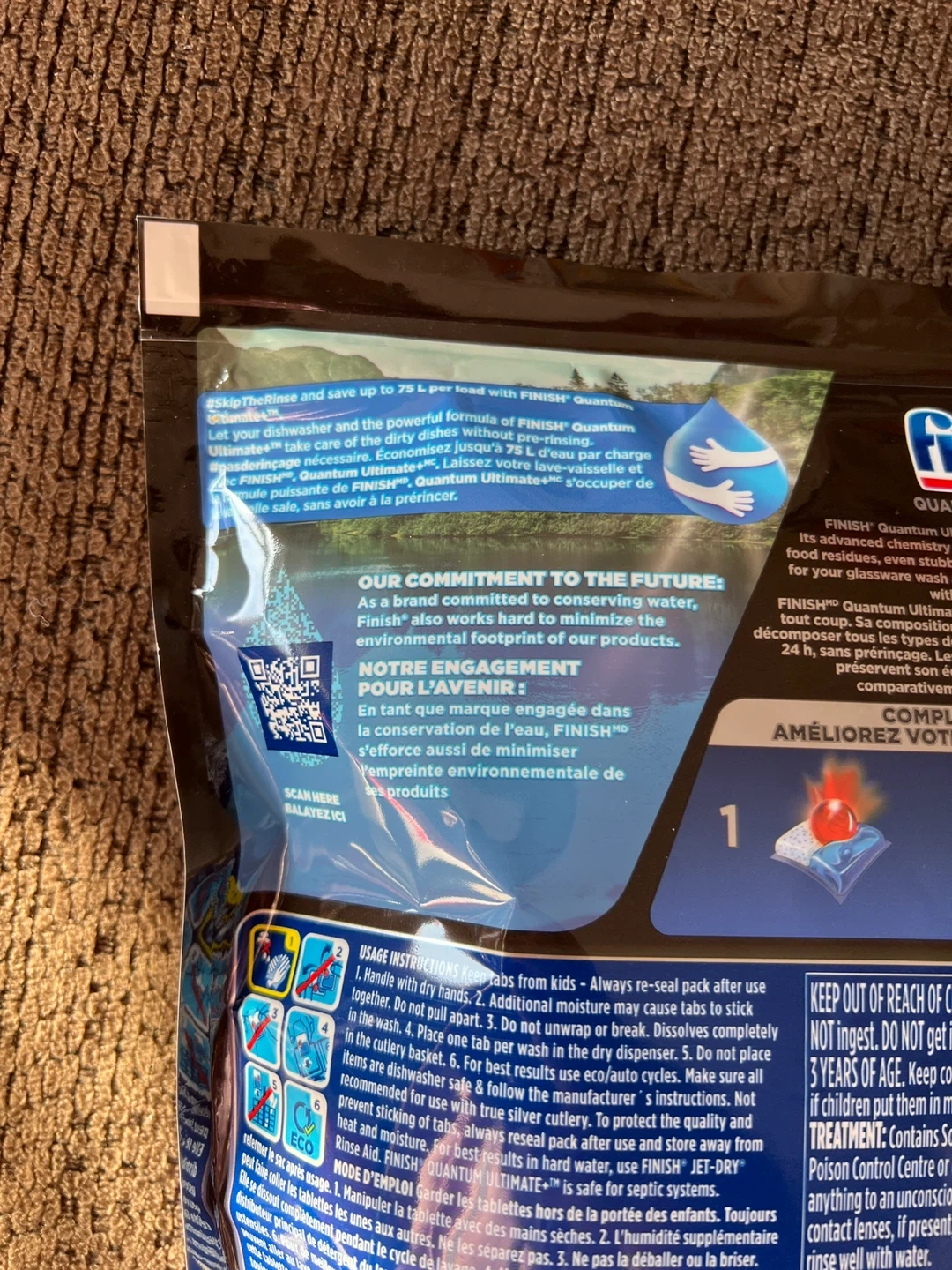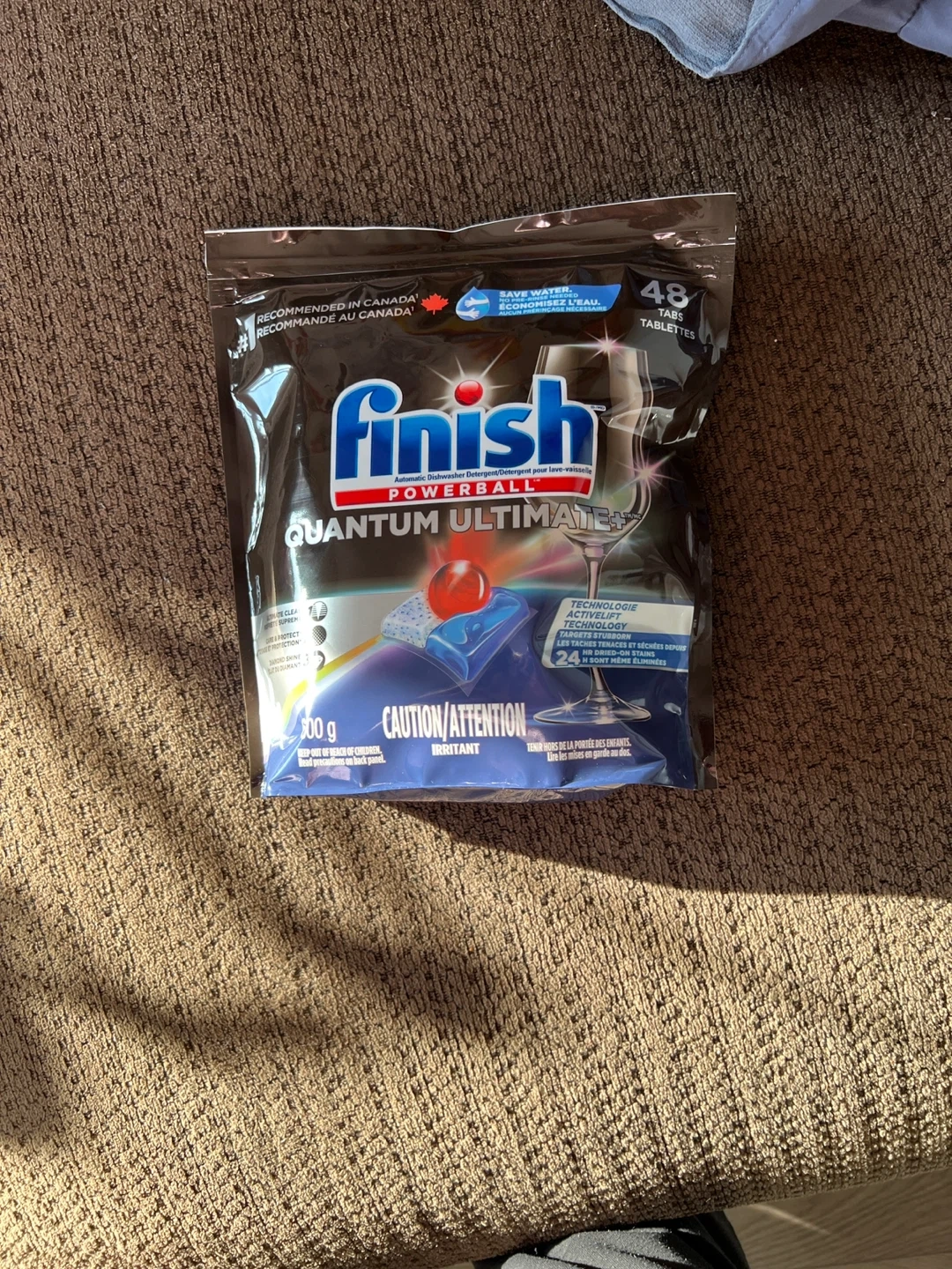 Selling a 48-count package of Finish Quantum Ultimate Powerball dishwasher detergent tablets