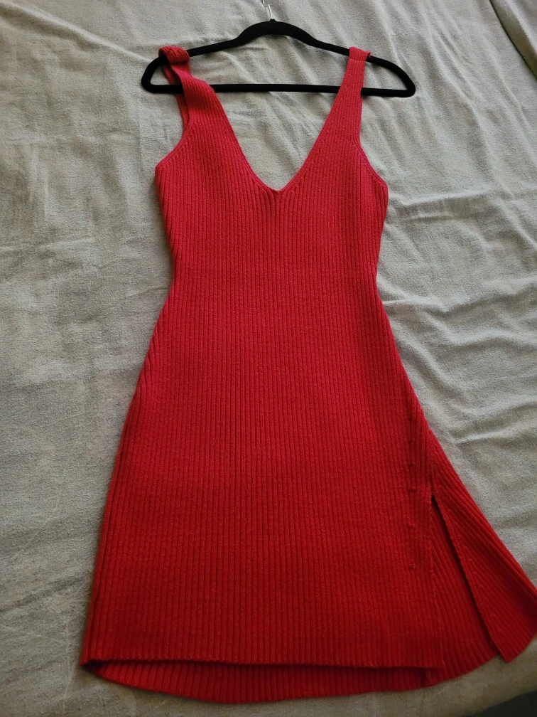 Selling a cute Urban Outfitters Lady Cloud Knit Mini Dress! I bought this on Victorias secret website and I didnt choose the right size. This dress is a vibrant red and features a stylish knit design. Perfect for a night out or a casual day. Originally bought for $100 CAD.