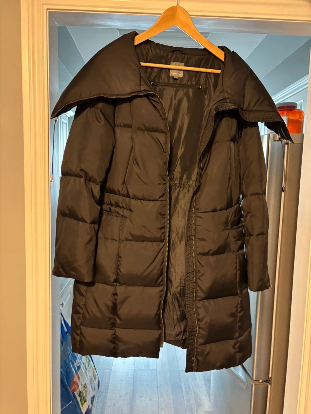 Brown puffer Coat Long length, warm, and stylish. Has a large collar that can be worn up or down. Dover down / Feather 🪶 Smoked free home,